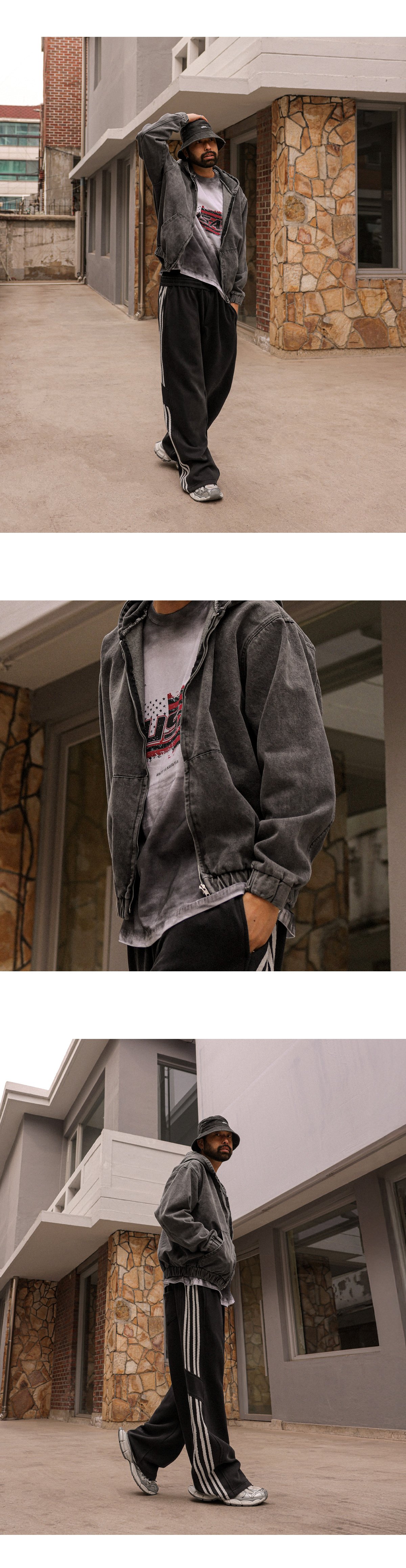 데님 원단에 은은한 워싱감을 더했으며