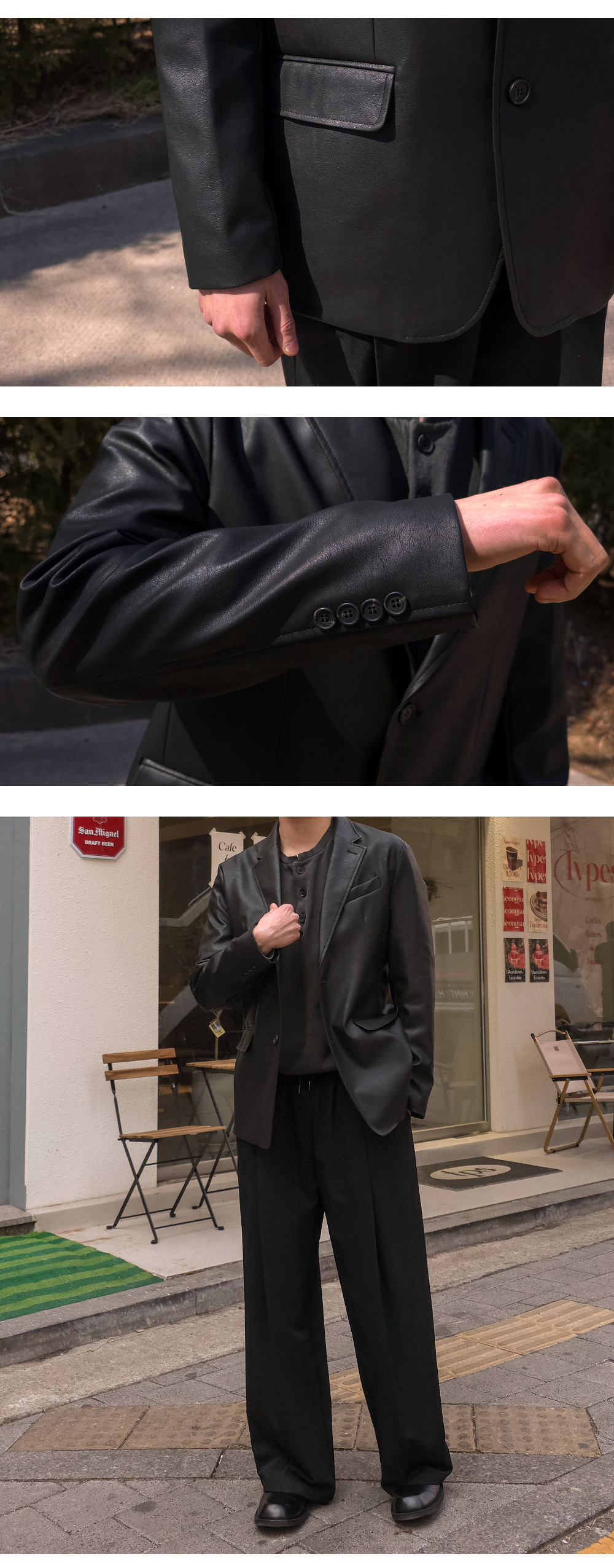 시즌 유행 없이 즐겨 입기 좋은 레더 자켓입니다.