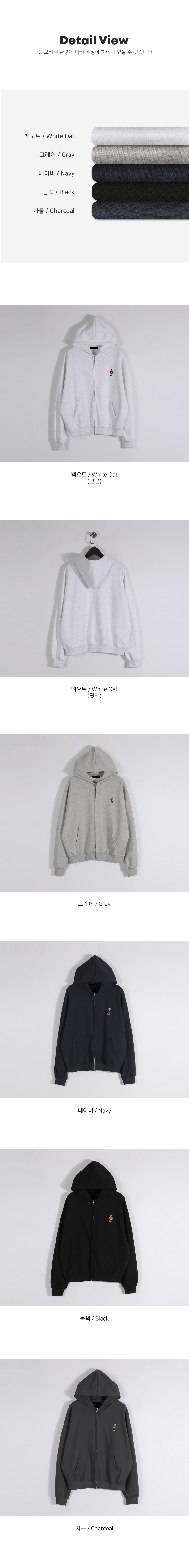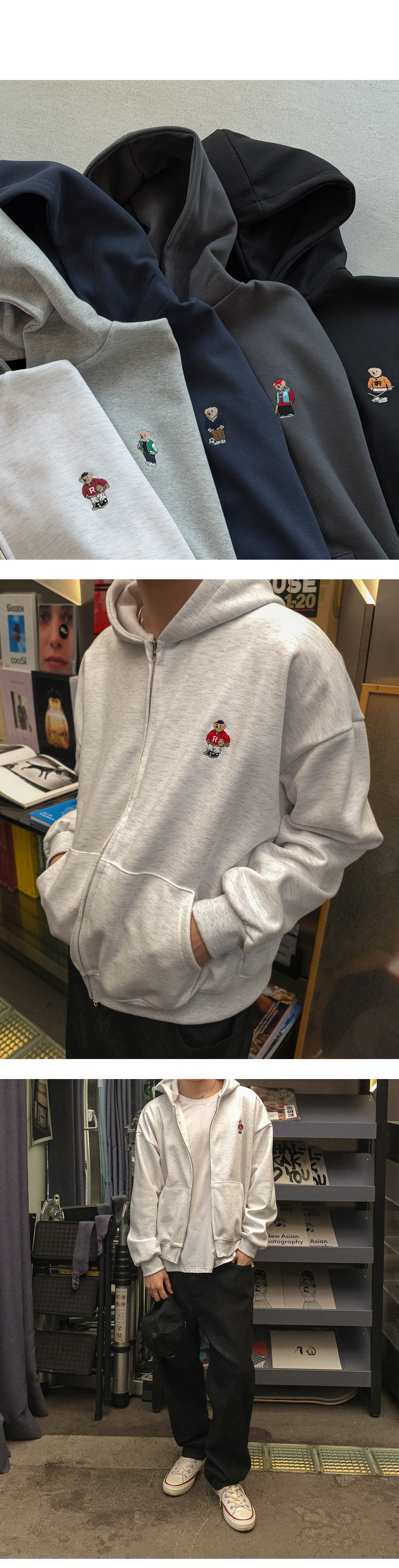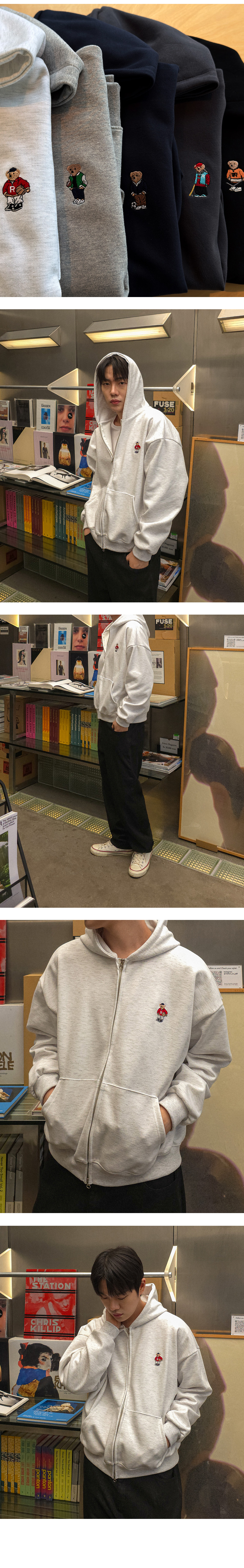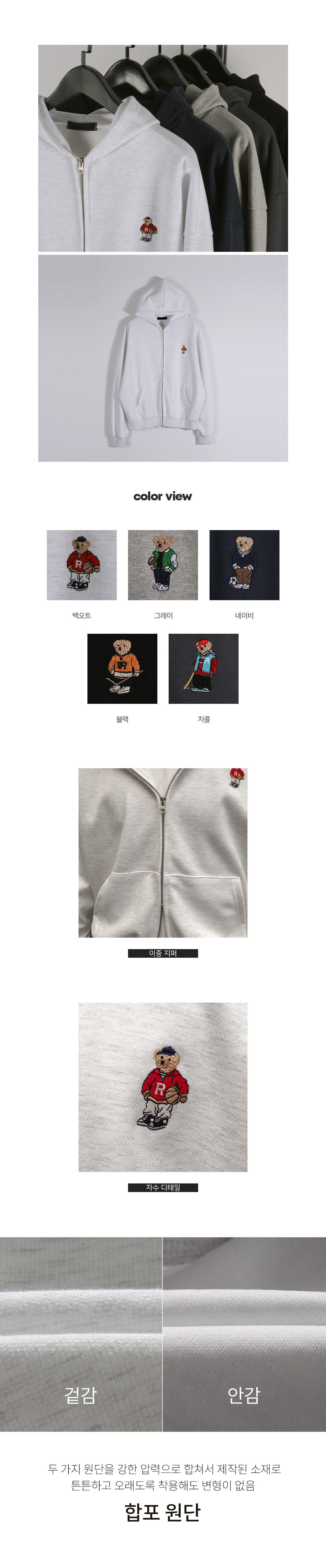 베이직한 컬러웨이와 색상마다 다른 곰돌이 자수로