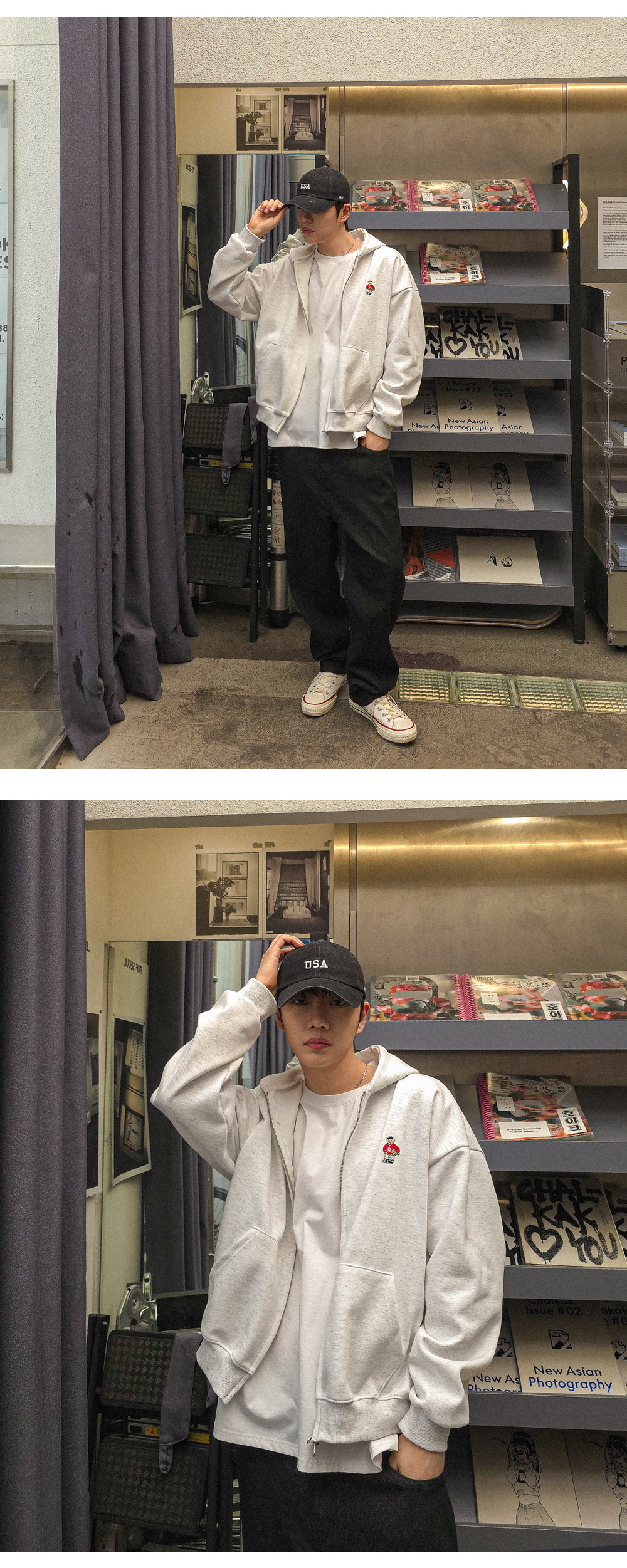 휘뚜루마뚜루 착용 가능한 후드 집업입니다.