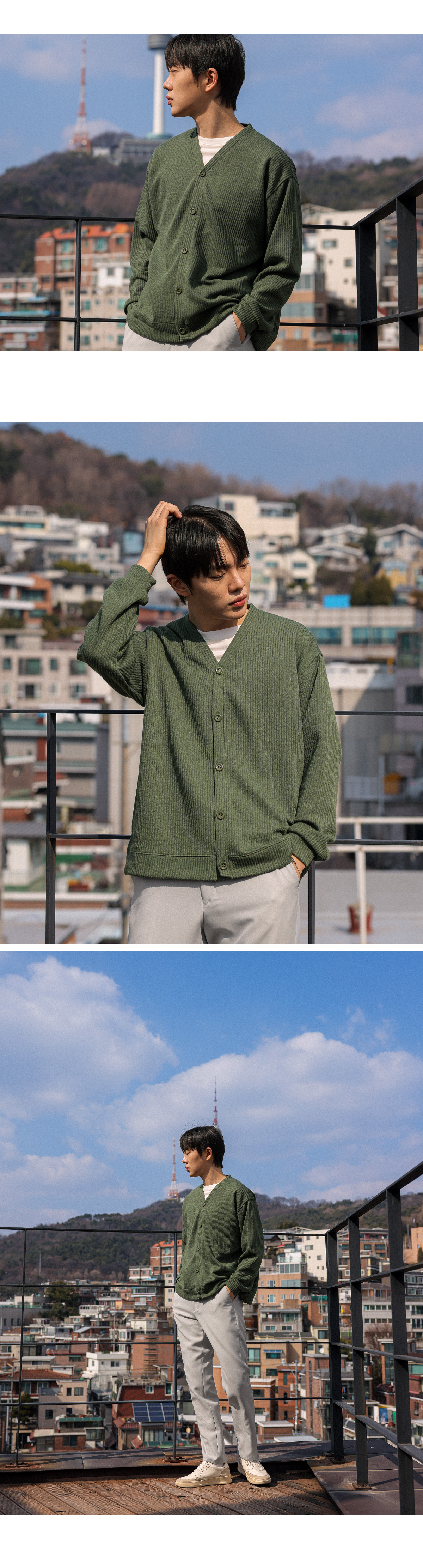 깔끔하고 미니멀한 무드가 돋보이는 브이넥 가디건입니다.