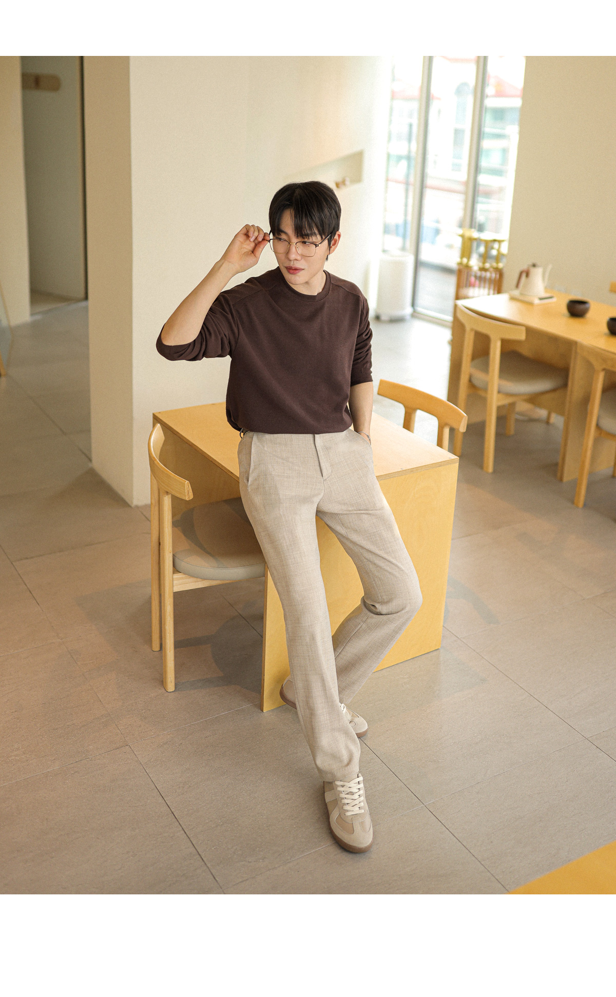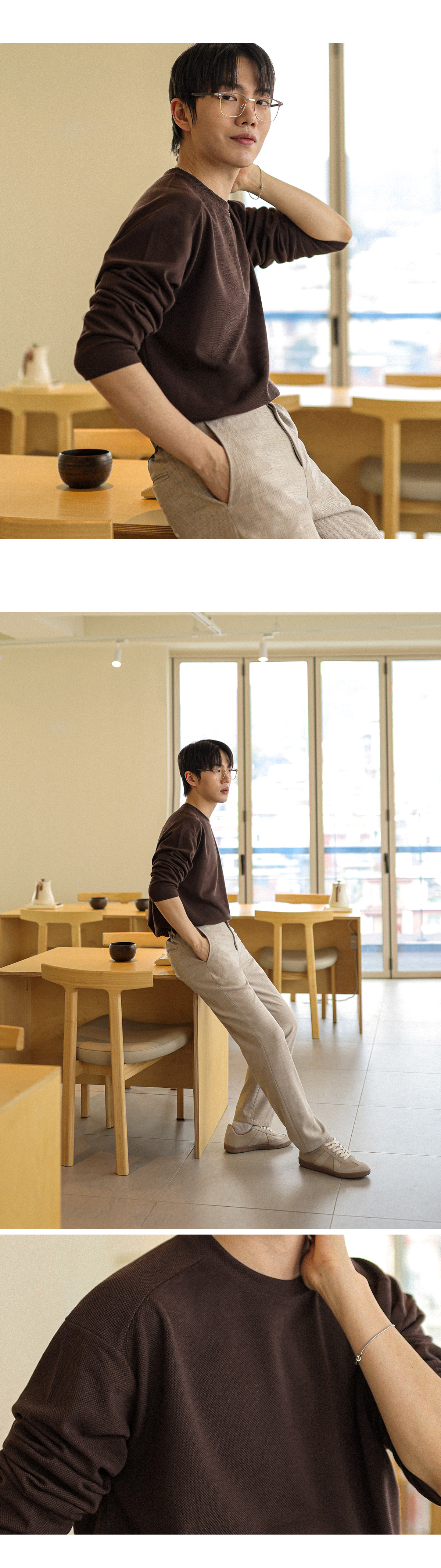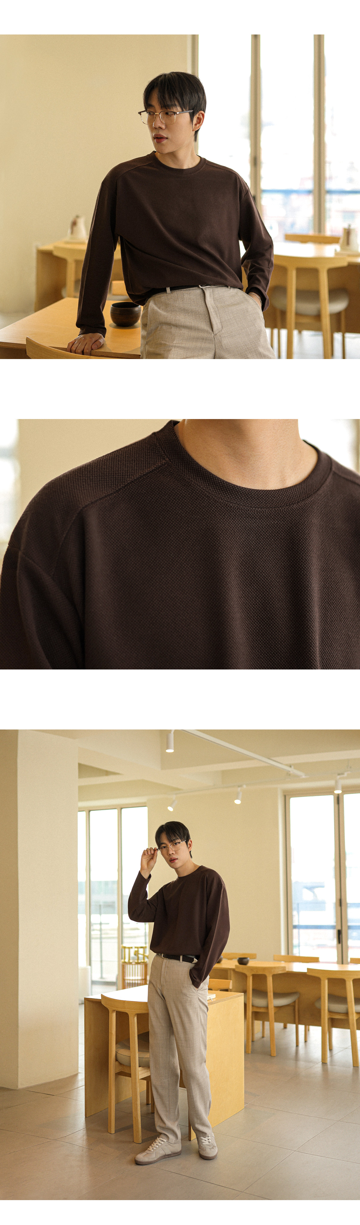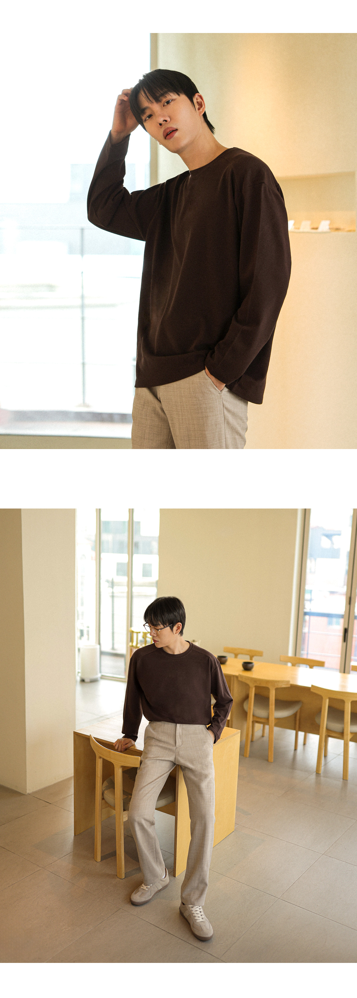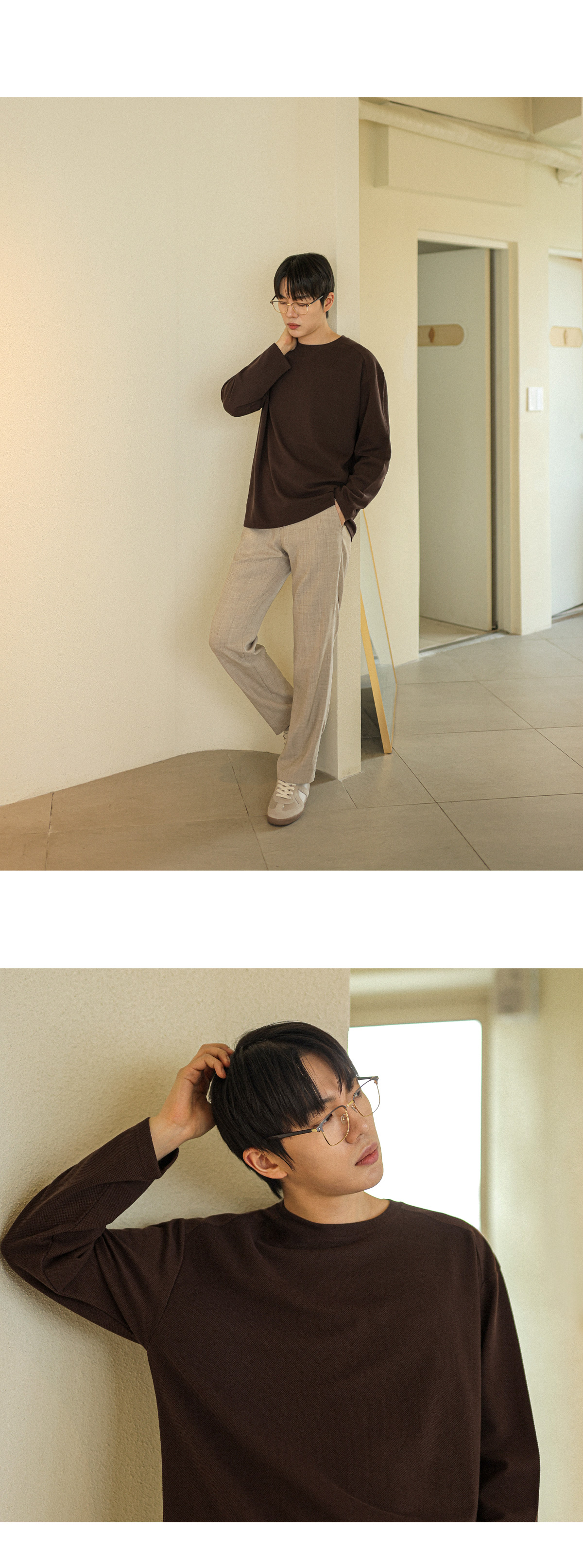 소재 자체만으로도 포인트가 되어 주는 긴팔 티입니다.