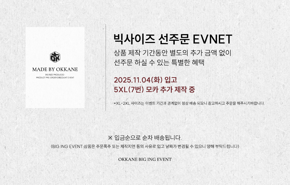| 빅사이즈 (5XL) 부터는 추가금액이 있습니다. |