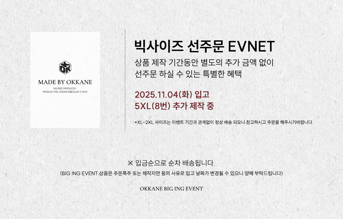 | 빅사이즈 (5XL) 부터는 추가금액이 있습니다. |
