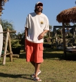 |  MD COMMENT 휴양지로 떠나고 싶은 반팔 티셔츠 입니다. 여름내내 활용하기 좋은 두께감은 물론 앞 뒷면 나염으로 포인트를 주어 팬츠에 따라 캐주얼룩,휴양지룩,스트릿룩등 활용하기 좋은 아이템이며 핏 또한 오버핏으로 여유있는 피팅감을 느끼실수 있습니다. SIZE L-XL,2XL-3XL,4XL-5XL 모델착용 [KIHOON]색상 : 아이보리 / 사이즈 : L-XL