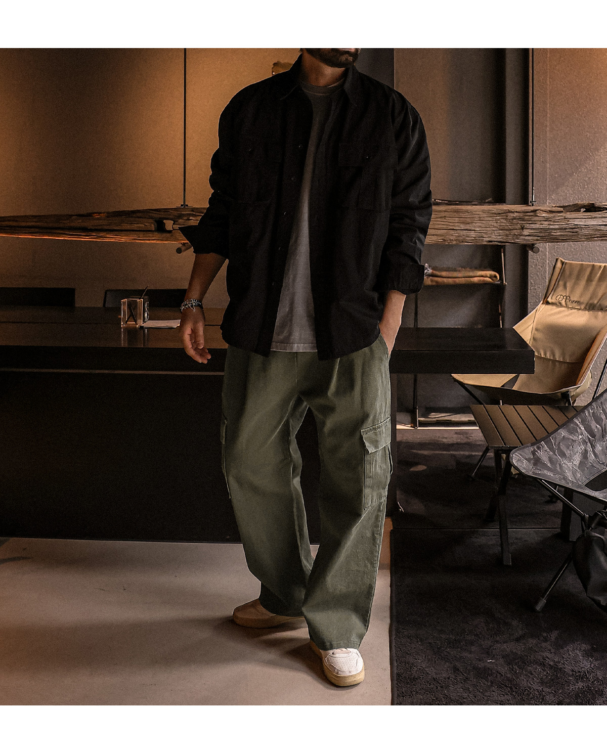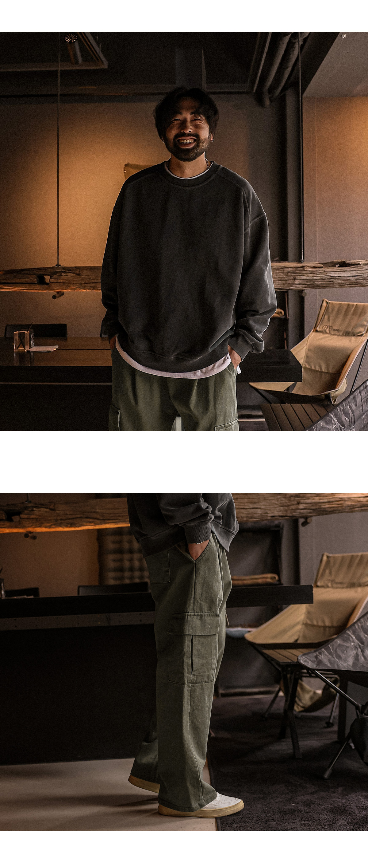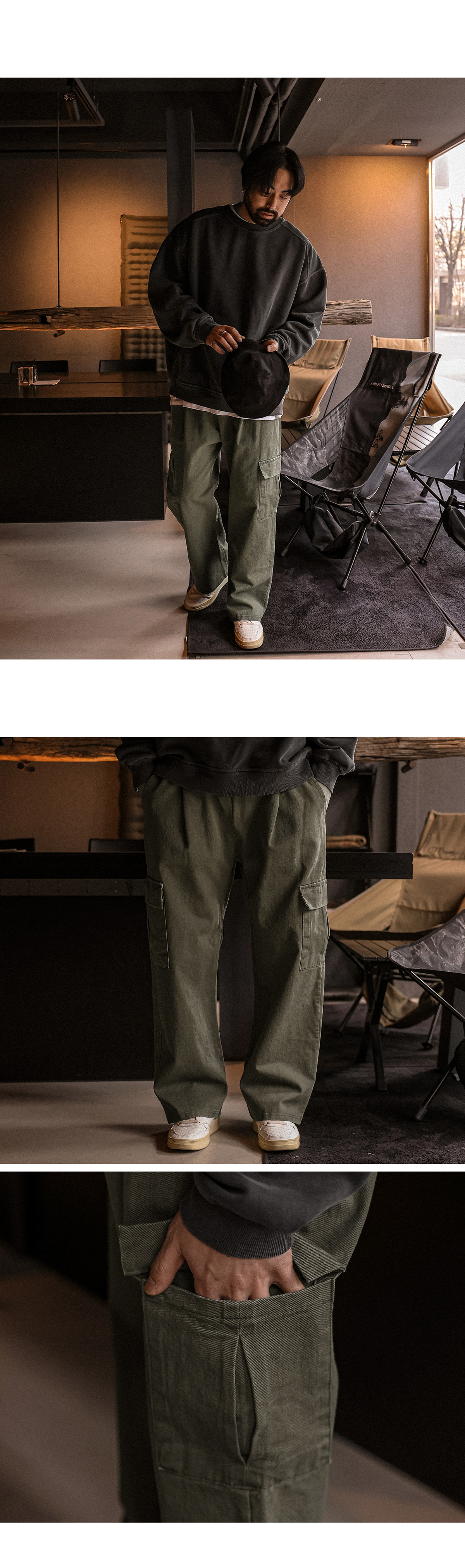 빈티지한 분위기의 카고팬츠입니다. 봄,가을 내내 착용하기 좋은 두께감은 물론 카치온 원단으로 제작되어 빈티지한 분위기를 낼 수 있고 사이드 카고포켓이 있어 수납공간까지 챙긴 아이템으로 후드티, 맨투맨, 긴팔티등 다양한 상의와 매치하여 데일리룩, 캐주얼룩, 스트릿룩 등 여러 연출이 가능하고 핏 또한 세미와이드핏으로 몸에 맞는 착용감을 느끼실 수 있습니다. SIZE M,L-XL 모델착용 [KIHOON]색상 : 카키 / 사이즈 : L-XL