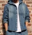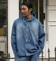 |  MD COMMENT 가볍게 활용하기 좋은 후드 데님셔츠 입니다. 초여름까지도 활용하기 좋은 두께감은 물론 셋업인 팬츠와 혹은 단독으로 면팬츠,조거팬츠,반바지등 매치하기 좋으며 핏 또한 살짝 오버핏으로 좀더 여유있는 피팅감을 느끼실수 있습니다. SIZE FREE 모델착용 [JUNBEOM]색상 : 중청 / 사이즈 : FREE
