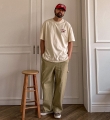 |  MD COMMENT 다양한 팬츠와도 어울리는 반팔 티셔츠 입니다. 여름내내 활용하기 좋은 두께감은 물론 단품으로 혹은 셔츠자켓 등 레이어드해 포인트 주기 좋은 아이템이며 핏 또한 루즈한 핏으로 좀 더 여유있는 피팅감을 느끼실 수 있습니다. SIZE L-XL,2XL-3XL,4XL-5XL 모델착용 [KIHOON]색상 : 크림 / 사이즈 : L-XL