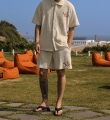 타올지로 제작된 반팔셔츠 입니다. 여름내내 시원하게 활용하기 좋은 두께감은 물론 유니크한 타올지 반팔셔츠 스타일로 제작되어 셋업인 밴딩반바지와 혹은 단독으로 린넨팬츠,데님팬츠등 매치해 캐주얼룩,휴양지룩,홈웨어룩등 활용하기 좋은 아이템이며 핏 또한 루즈한 핏으로 좀더 여유있는 피팅감을 느끼실수 있습니다. SIZE FREE 모델착용 [KIHOON]색상 : 베이지 / 사이즈 : FREE ![]() ![]() ![]() ![]() ![]() ![]() ![]() ![]()