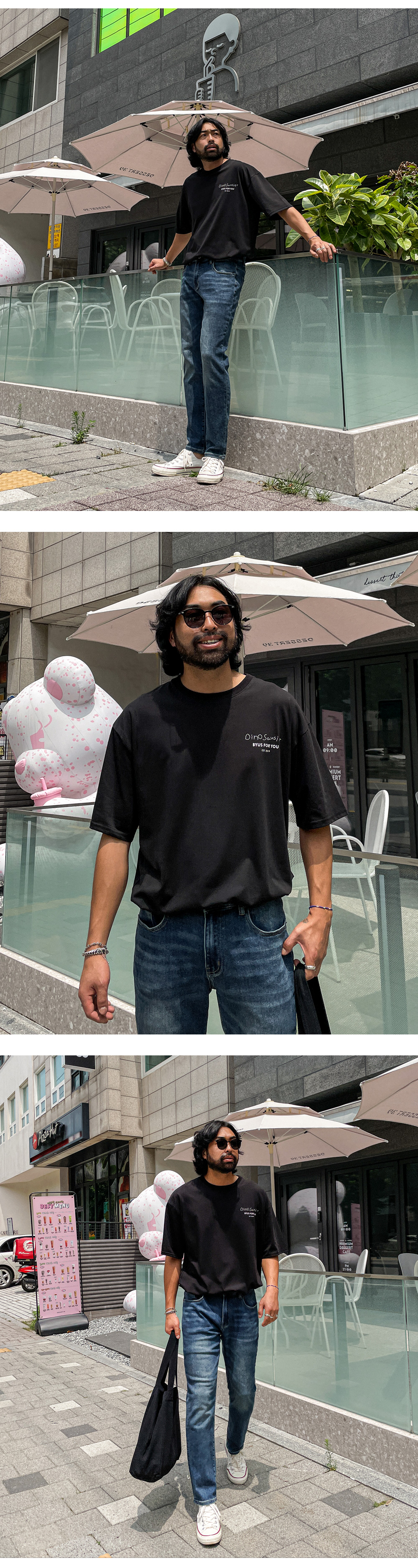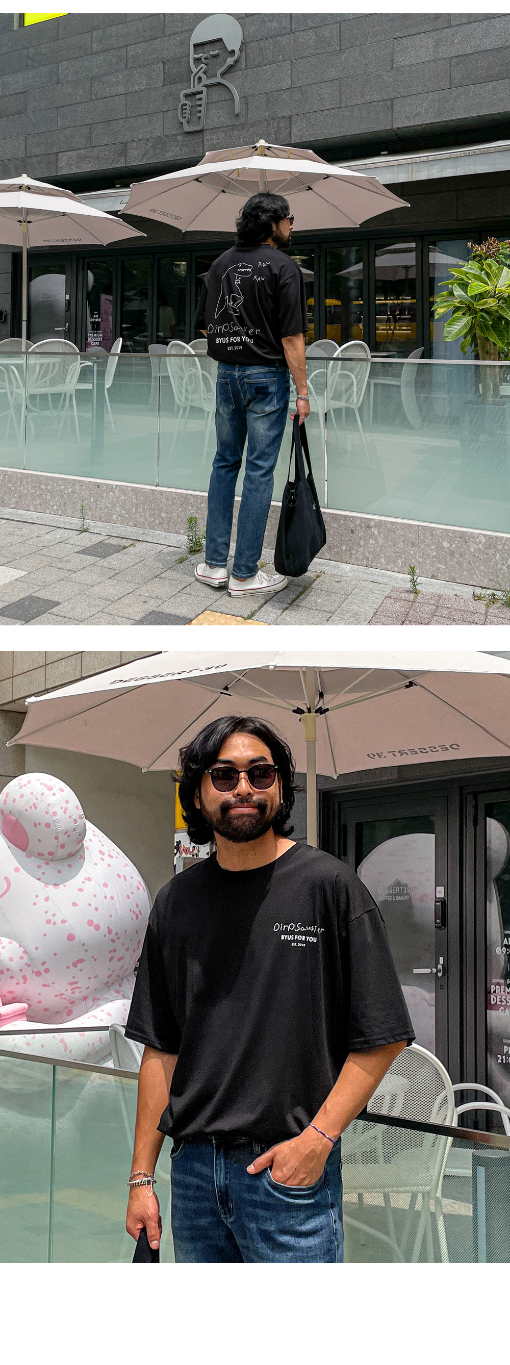 베이직한 디자인의 반팔티입니다. 봄부터 가을초까지 착용하기 좋은 두께감은 물론 앞뒤면의 부담스럽지 않은 나염이 포인트되어 반바지, 데님 팬츠, 트레이닝 팬츠 등 다양한 하의와 매치하여 데일리룩, 캐주얼룩, 홈웨어룩 등 여러 연출이 가능하고 핏 또한 루즈핏이지만 신축성이 있어 좀 더 여유 있는 착용감을 느끼실 수 있습니다. SIZE XL-2XL(2번),3XL-4XL(3번),5XL-6XL(4번) 모델착용 [KIHOON]색상 : 블랙 / 사이즈 : XL-2XL(2번) ![]() ![]() ![]() ![]() ![]() ![]() ![]() ![]()