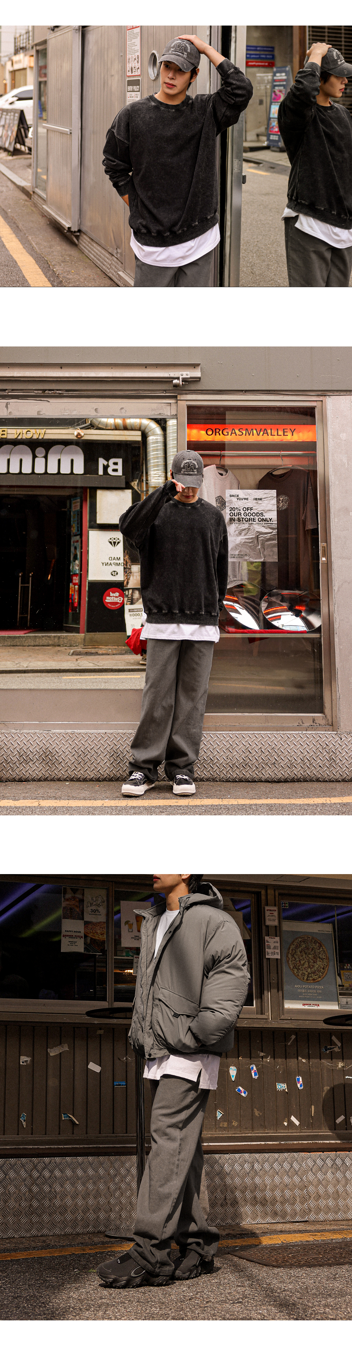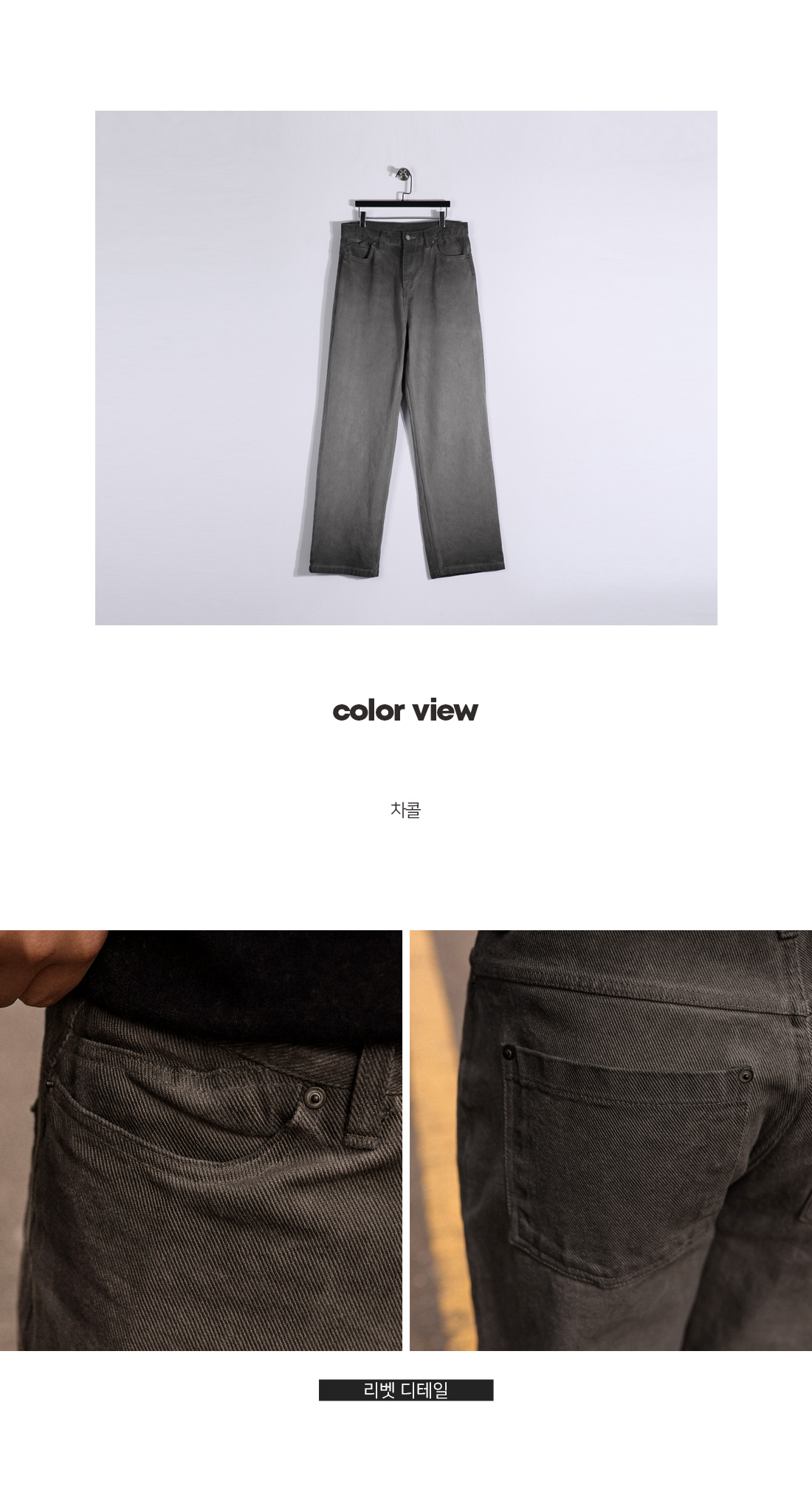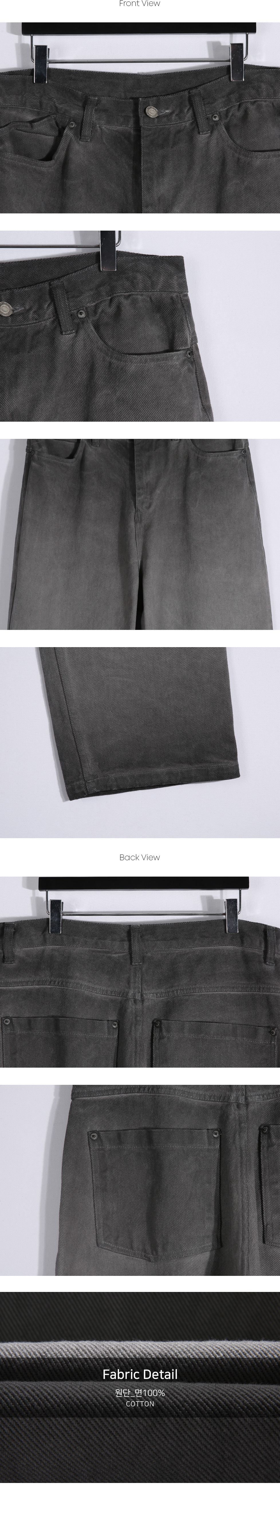 일반 팬츠와 차별화되는 워싱이 유니크한 팬츠입니다. 포켓 리벳 디테일과 그라데이션 워싱으로 빈티지한 감성을 더했습니다. 워싱감 있는 상의, 경량 패딩, 레더 자켓 등과 함께 매치하면 포인트 코디가 가능하며, 탄탄한 원단과 적당한 두께감으로 사계절 내내 스타일링 하기 좋습니다. SIZE M,L-XL 모델착용 [YOOJUN]색상 : 차콜 / 사이즈 : M