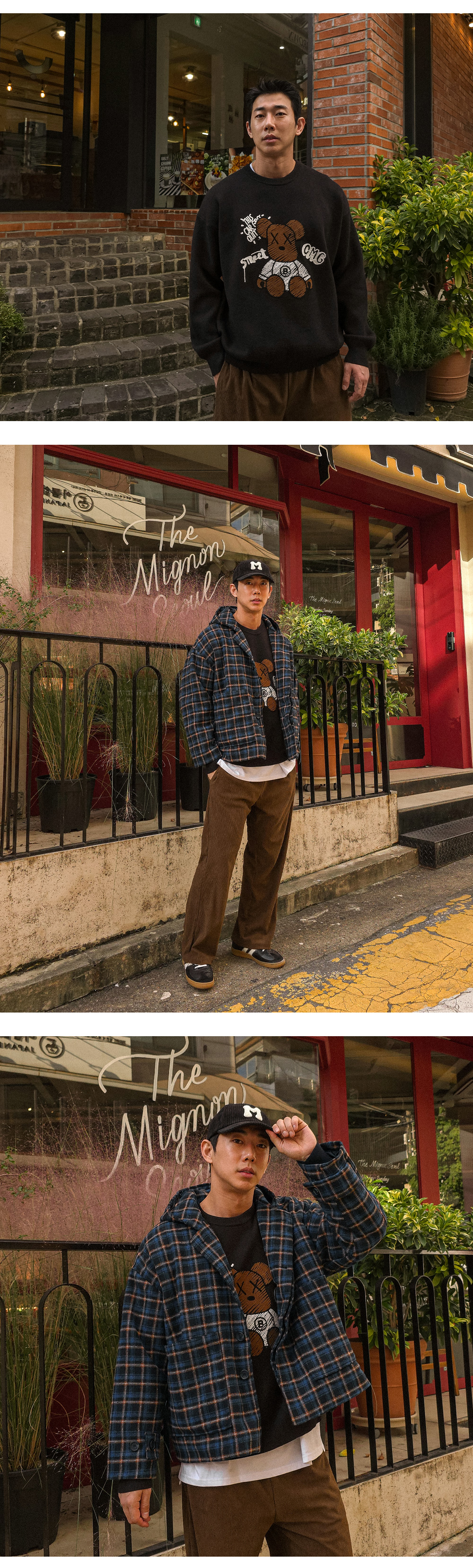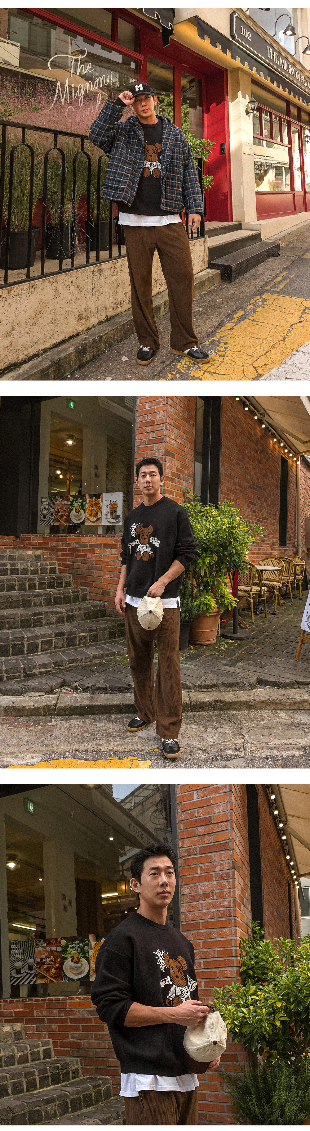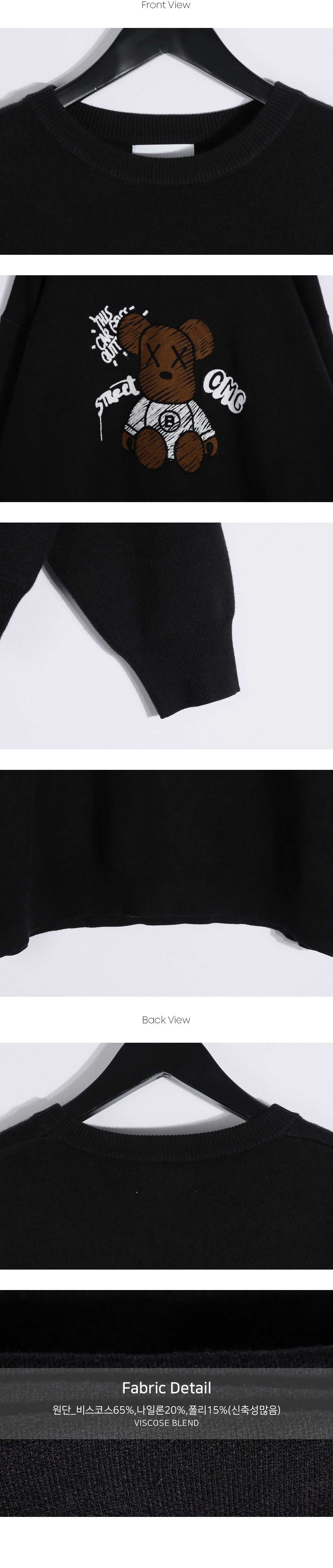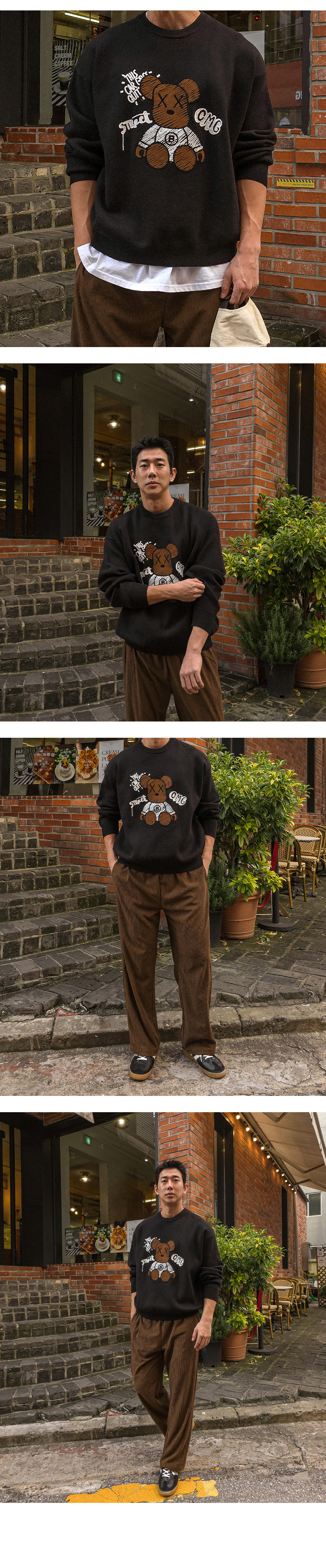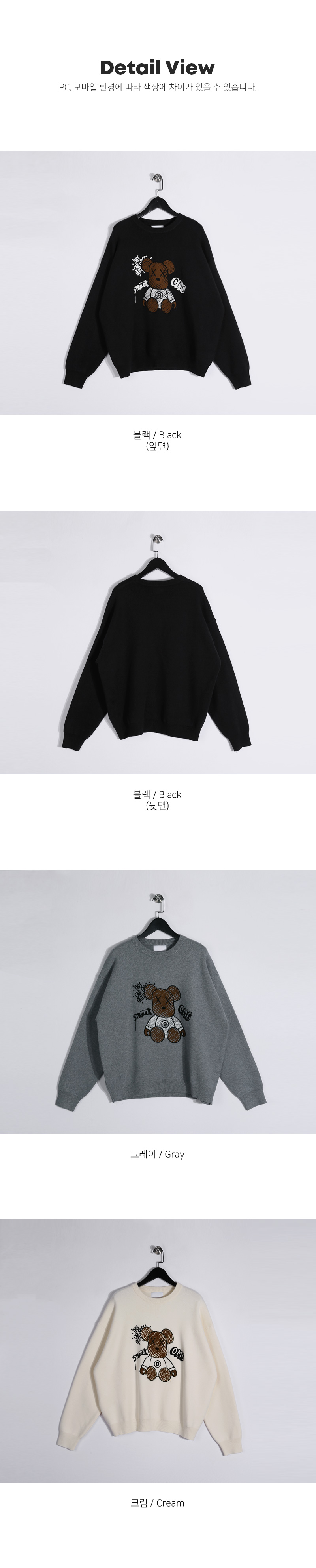 베어 그래픽으로 포인트를 준 루즈핏 니트입니다. 부드럽고 포근한 터치감의 니트 원사로 제작되어 장시간 착용에도 편안한 착용감을 제공합니다. 여유 있는 실루엣이 자연스럽게 떨어져 체형에 구애 없이 누구나 부담 없이 즐길 수 있으며, 프론트의 귀여운 베어 나염 디테일이 캐주얼한 매력을 더해줍니다. 단독으로는 물론, 셔츠나 아우터 안에 레이어드해도 감각적인 스타일링이 완성되며, 감성적인 무드와 캐주얼함을 동시에 연출할 수 있습니다. SIZE FREE 모델착용 [JUNBEOM]색상 : 블랙 / 사이즈 : FREE ![]() ![]() ![]() ![]() ![]() ![]() ![]() ![]()