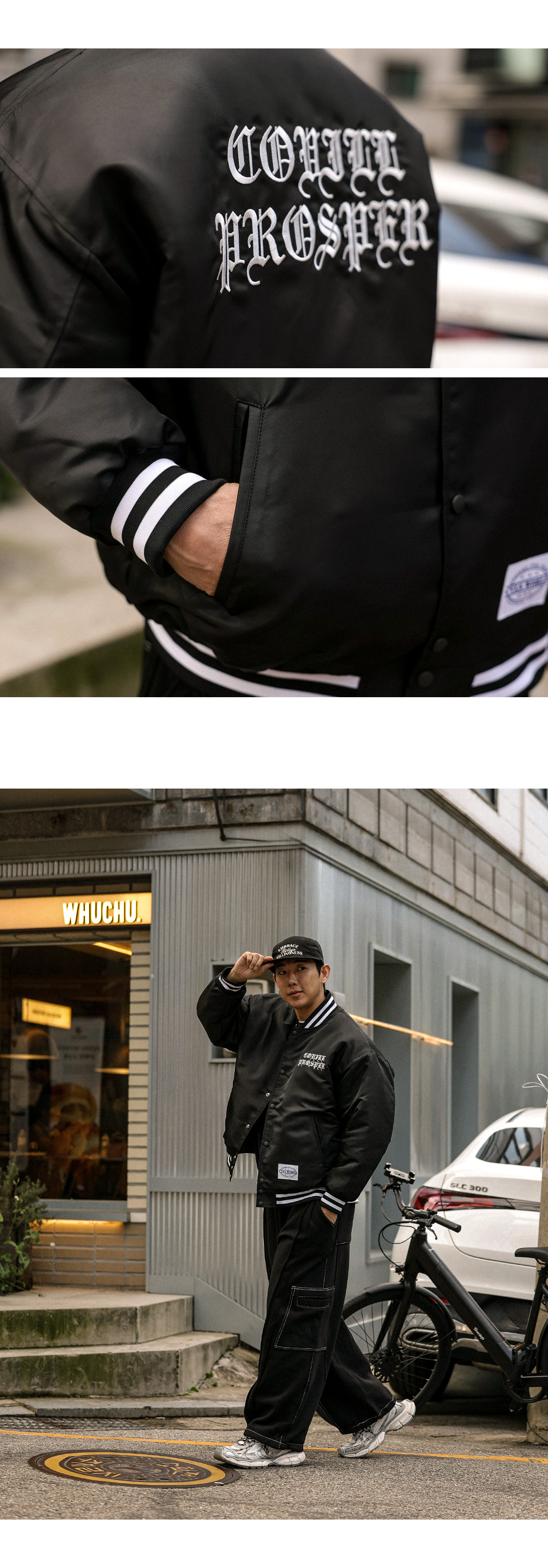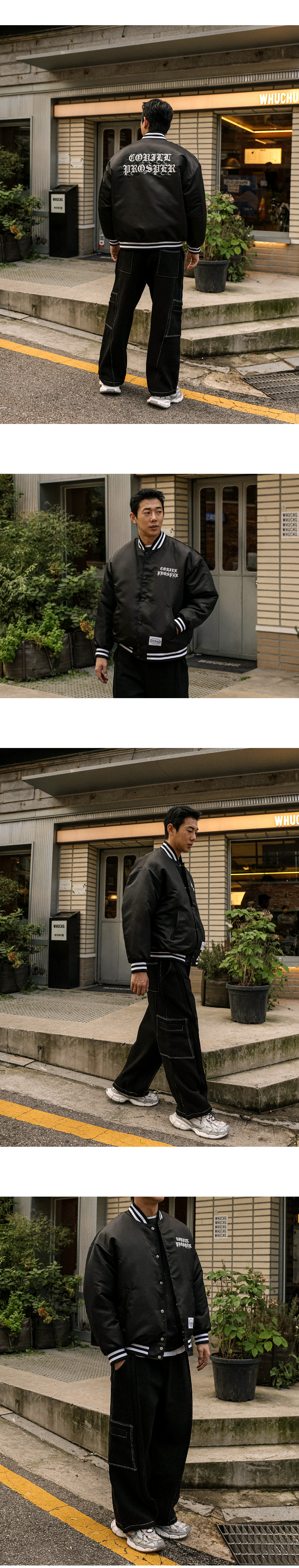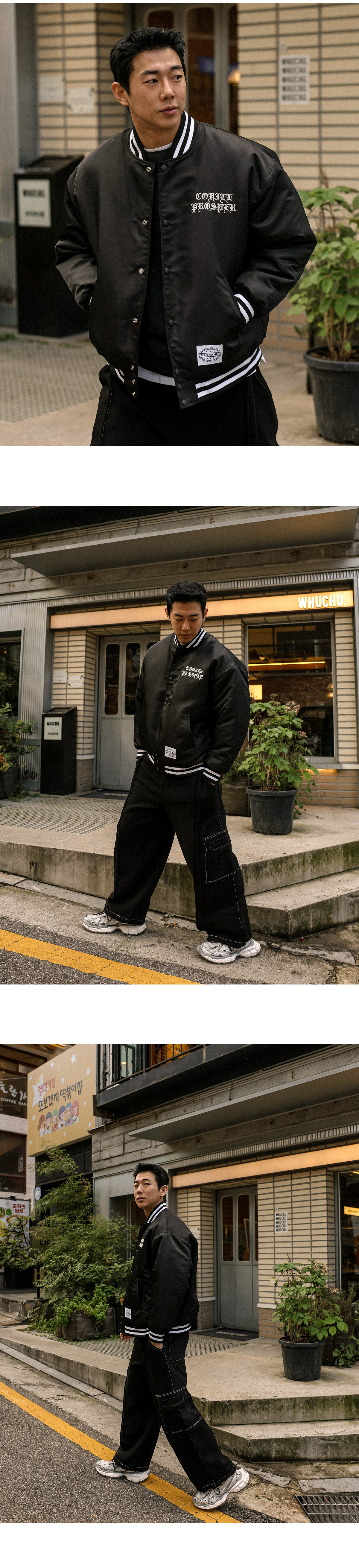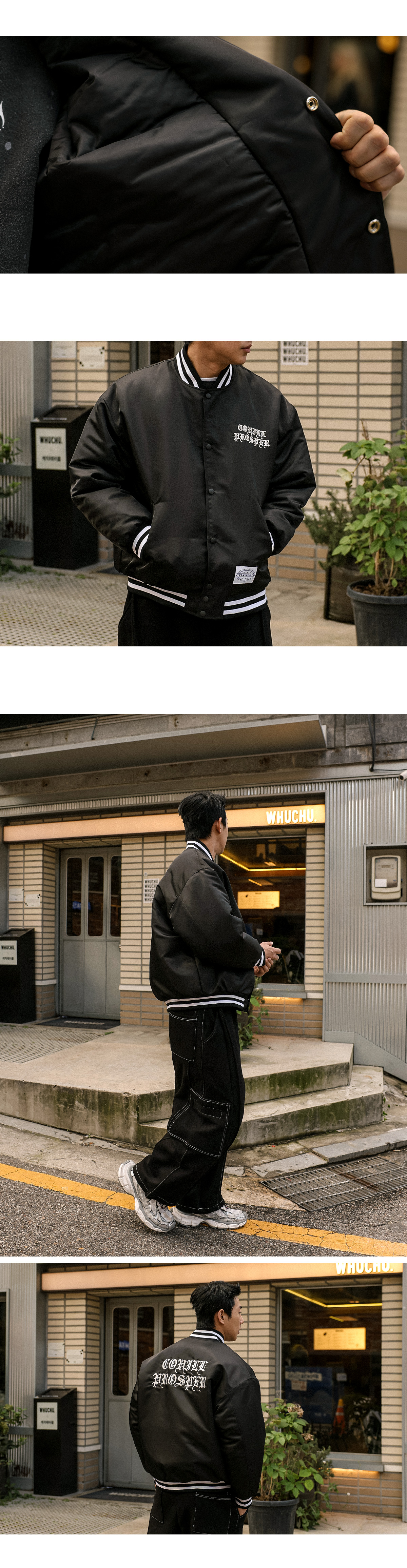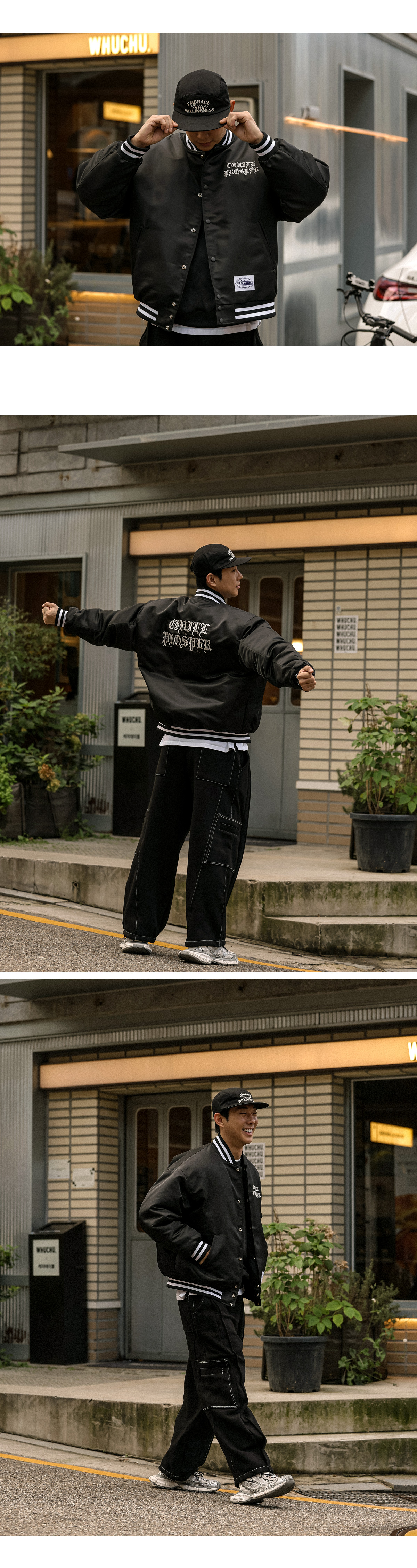 따뜻함과 스트릿 무드를 동시에 담아낸 바시티 점퍼입니다. 넥·소매·밑단의 탄탄한 시보리 디테일로 안정감 있는 핏과 편안한 착용감을 제공하며, 활동성 또한 뛰어납니다. 4온스 충전재를 사용해 겨울철에도 충분한 보온성을 유지하고, 두 줄 배색 라인과 전·후면의 레터링 자수, 패치 디테일이 스트릿 감성을 한층 더 강조해 줍니다. 캐주얼 팬츠와 매치하면 감각적인 데일리룩은 물론, 편안한 홈웨어 스타일로도 손쉽게 연출 가능한 실용적인 아이템입니다. 시즌마다 변하지 않는 매력을 가진, 스트릿 무드의 정석 바시티 점퍼입니다. SIZE FREE 모델착용 [JUNBEOM]색상 : 블랙 / 사이즈 : FREE ![]() ![]() ![]() ![]() ![]() ![]() ![]() ![]()