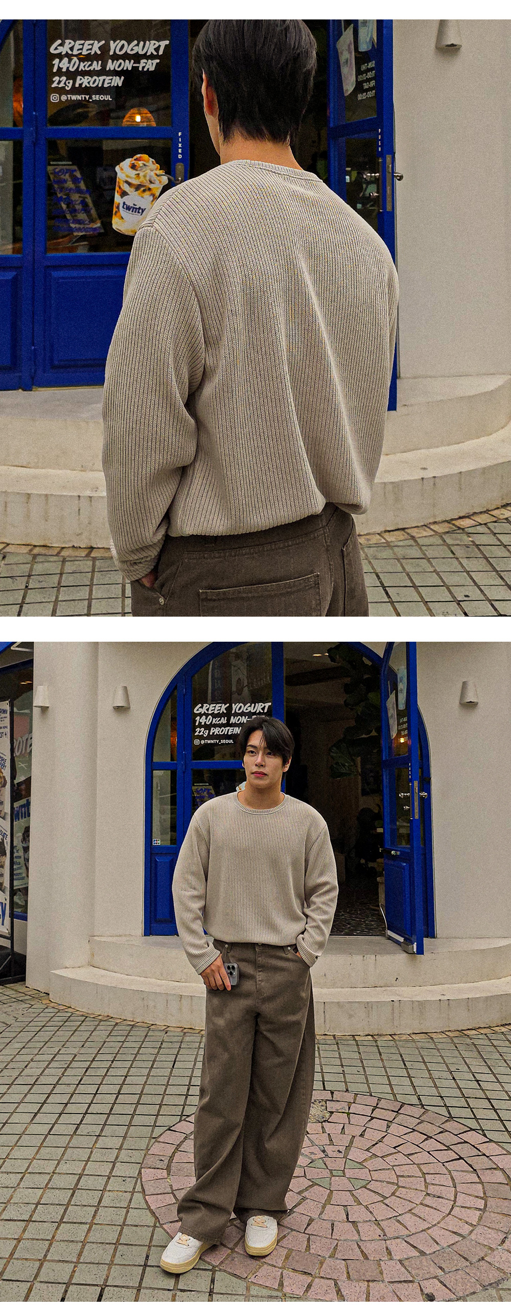 골지 패턴으로 제작된 긴팔 티셔츠로, 루즈한 핏감과 스판성이 더해져 편안하게 착용할 수 있습니다. 넉넉한 라운드넥 디자인으로 누구나 부담 없이 즐기기 좋습니다. 심플한 골지 디자인으로 셔츠 자켓, 자켓, 가디건 등 다양한 아우터 안에 레이어드하기 좋으며, 기본 이너로 활용하기 좋은 데일리 아이템입니다. SIZE L-XL(1번),2XL-3XL(2번),4XL-5XL(3번) 모델착용 [YOOJUN]색상 : 베이지 / 사이즈 : L-XL(1번) ![]() ![]() ![]() ![]() ![]() ![]() ![]() ![]()