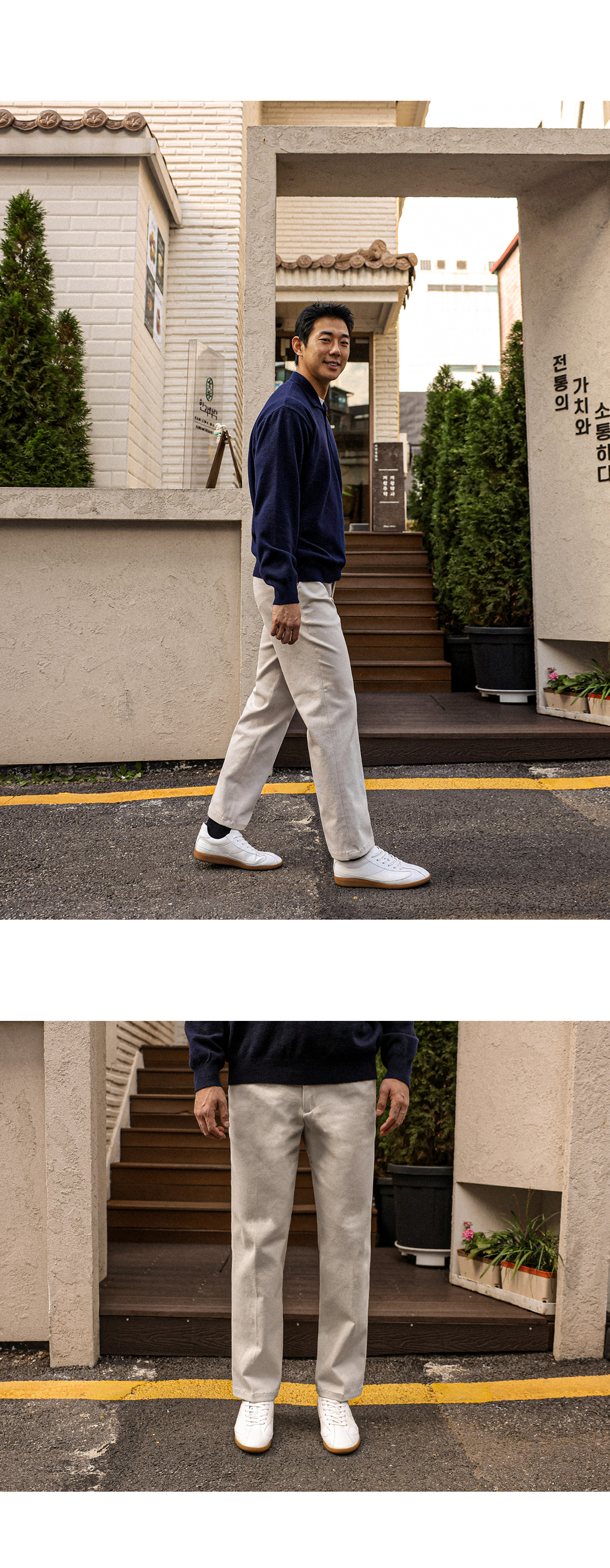 모던한 무드의 뒷밴딩 슬랙스입니다. 베이직한 디자인과 뒷밴딩 디테일로 편안한 착용감과 활동성을 동시에 제공합니다. 셔츠, 니트, 가디건 등 다양한 상의와 매치해 출근룩, 데이트룩 등 다양한 스타일링에 활용 가능하며, 적당한 두께감과 슬림한 실루엣, 스판성까지 갖춰 편안함까지 놓치지 않은 슬랙스 입니다. SIZE M,L,XL 모델착용 [JUNBEOM]색상 : 아이보리(168-3) / 사이즈 : XL