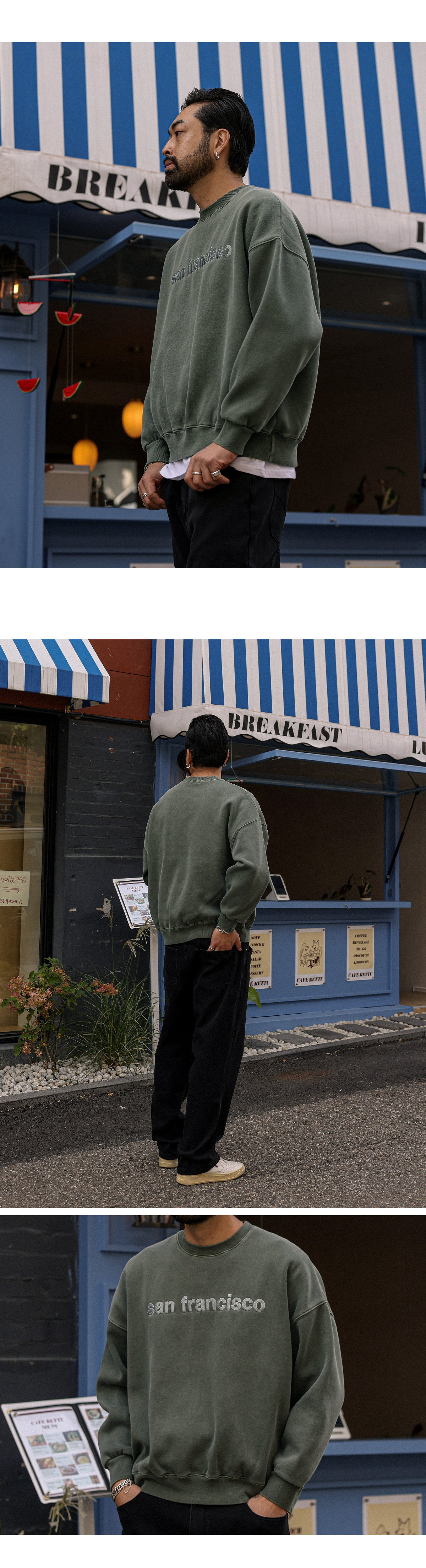 베이직하면서 멋스러운 피그먼트 기모 맨투맨 입니다. 앞면 레터링 자수 포인트와 안감 기모로 보온성을 높여주었습니다. 루즈한 핏감으로 제작되었으며 전체적인 피그먼트 워싱감에 레터링 자수로 제작되어 패딩, 자켓, 후드자켓 등 안에 레이어드 포인트로도 활용하기 좋은 맨투맨 입니다. SIZE FREE 모델착용 [KIHOON]색상 : 카키 / 사이즈 : FREE ![]() ![]() ![]() ![]() ![]() ![]() ![]() ![]() ![]()