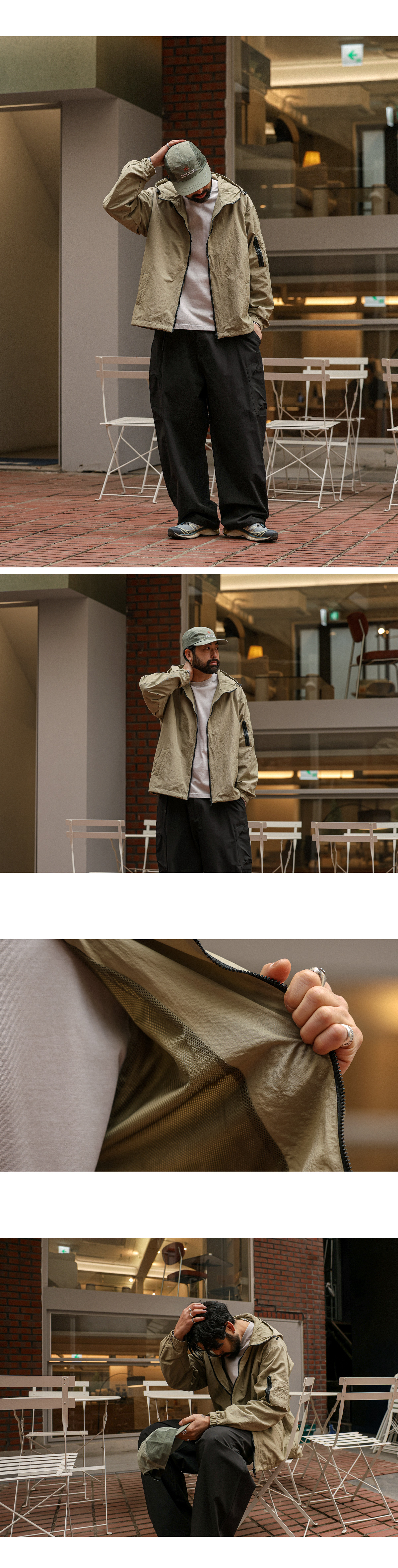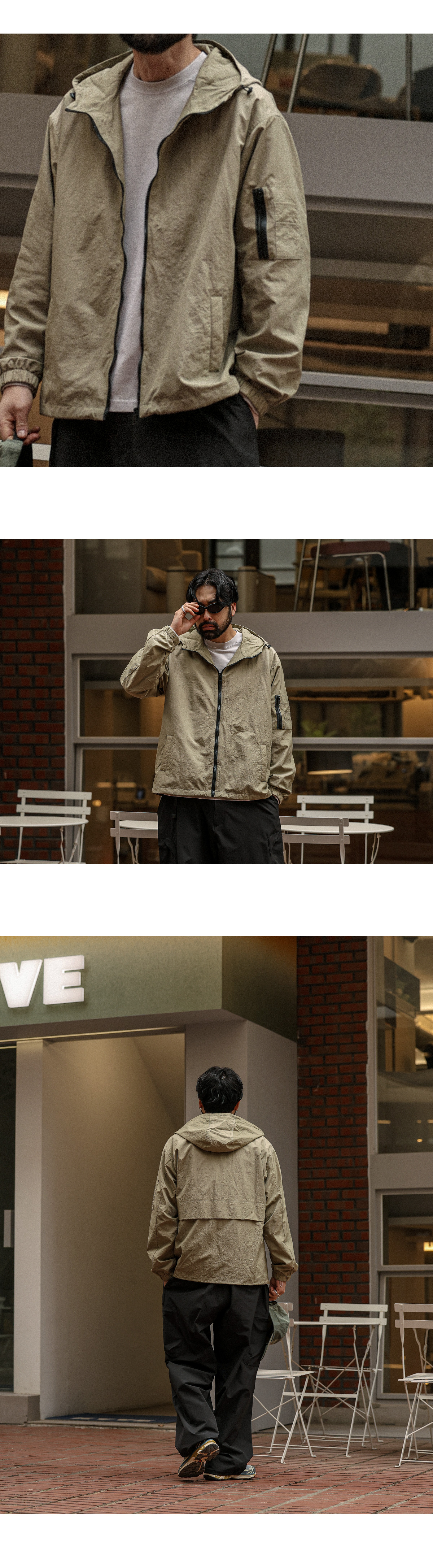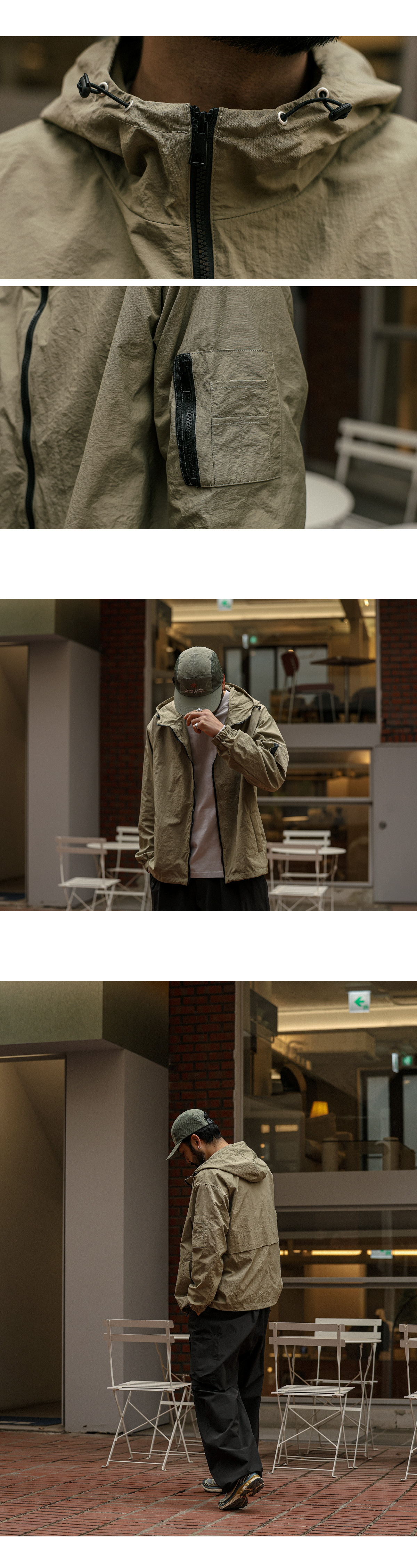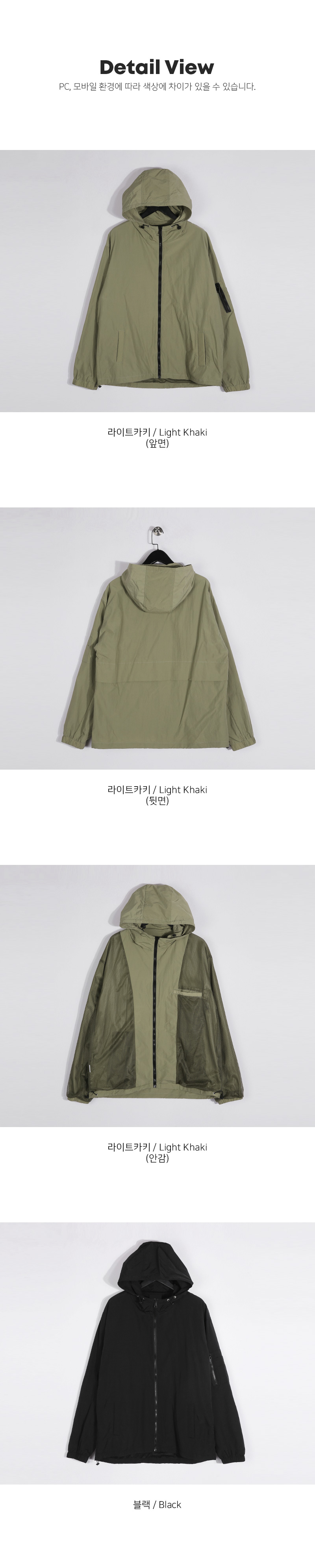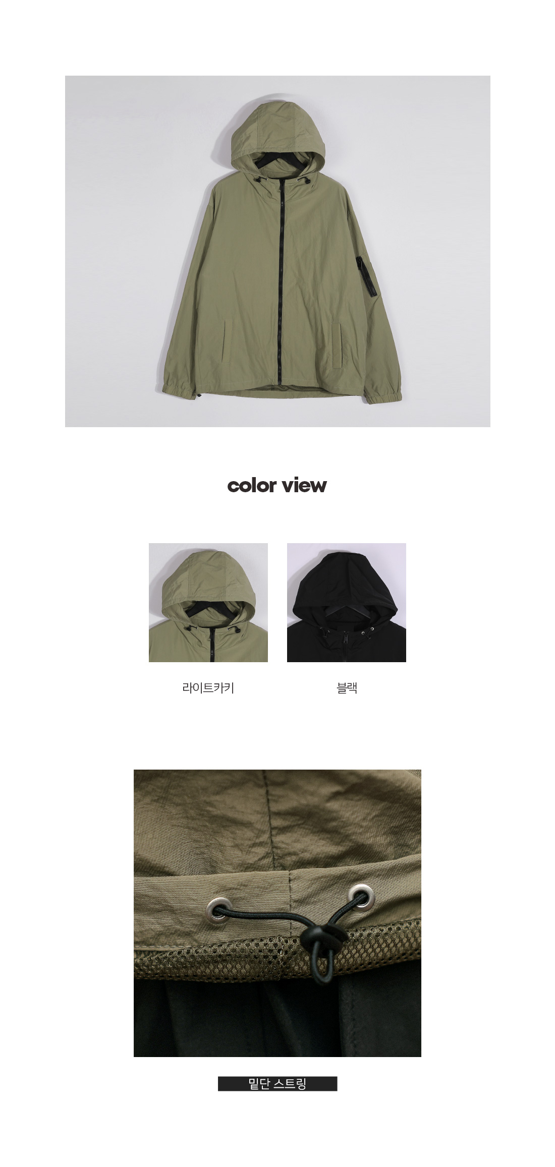 코디 걱정 없이 가볍게 걸치기 좋은 바람막이입니다. 특유의 바스락한 텍스처로 라이트하면서도 소프트한 터치감을 자랑하여 맨살에 스쳐도 거슬림 없이 착용 가능합니다. 소매 포켓과 후면 절개 디테일로 밋밋함을 덜어주는 실용적이면서도 디자인적 요소가 추가되었으며, 밑단 스트링을 추가해 취향에 맞게 다양한 무드로 연출이 가능합니다. 실패 없는 웨어러블한 제품을 찾으신다면 하나쯤 소장해 보시기를 추천드립니다. SIZE XL-2XL,3XL-4XL,5XL-6XL 모델착용 [KIHOON]색상 : 라이트카키 / 사이즈 : XL-2XL ![]() ![]() ![]() ![]() ![]() ![]() ![]() ![]()