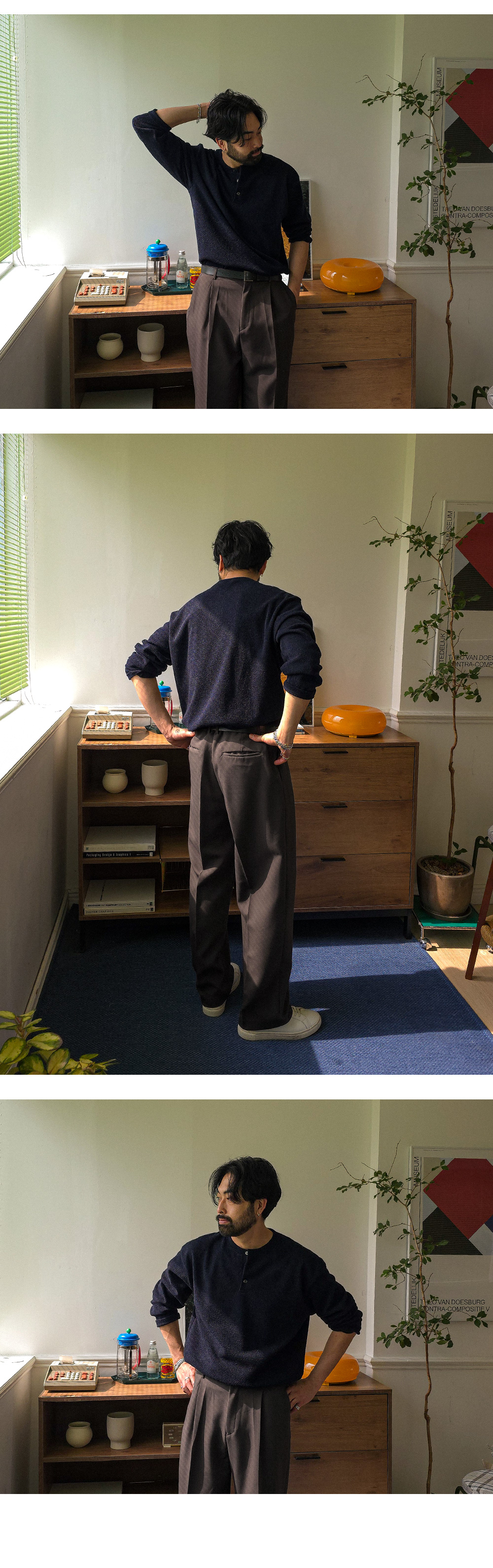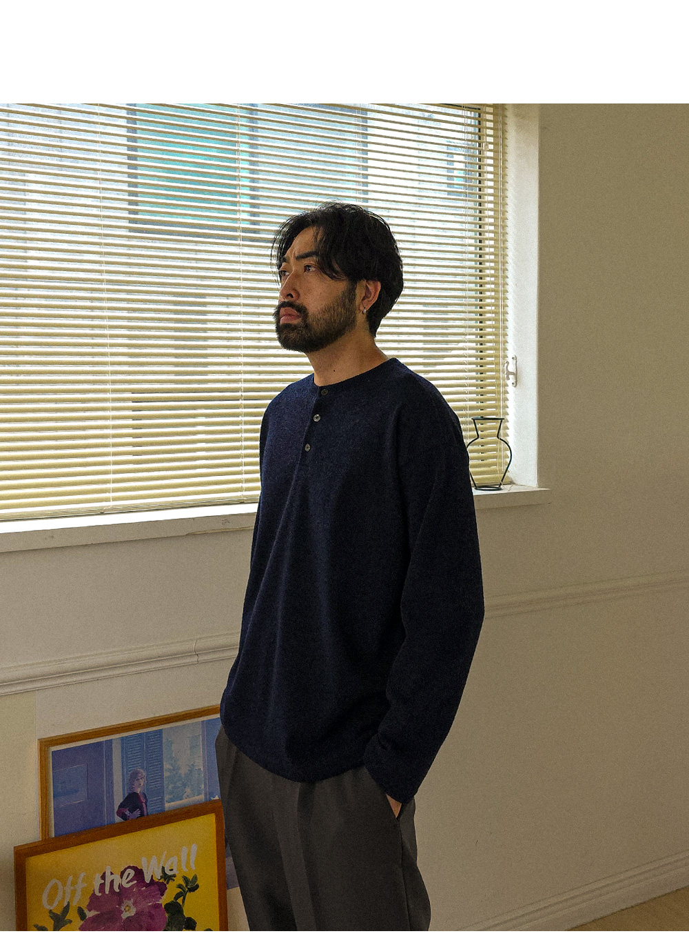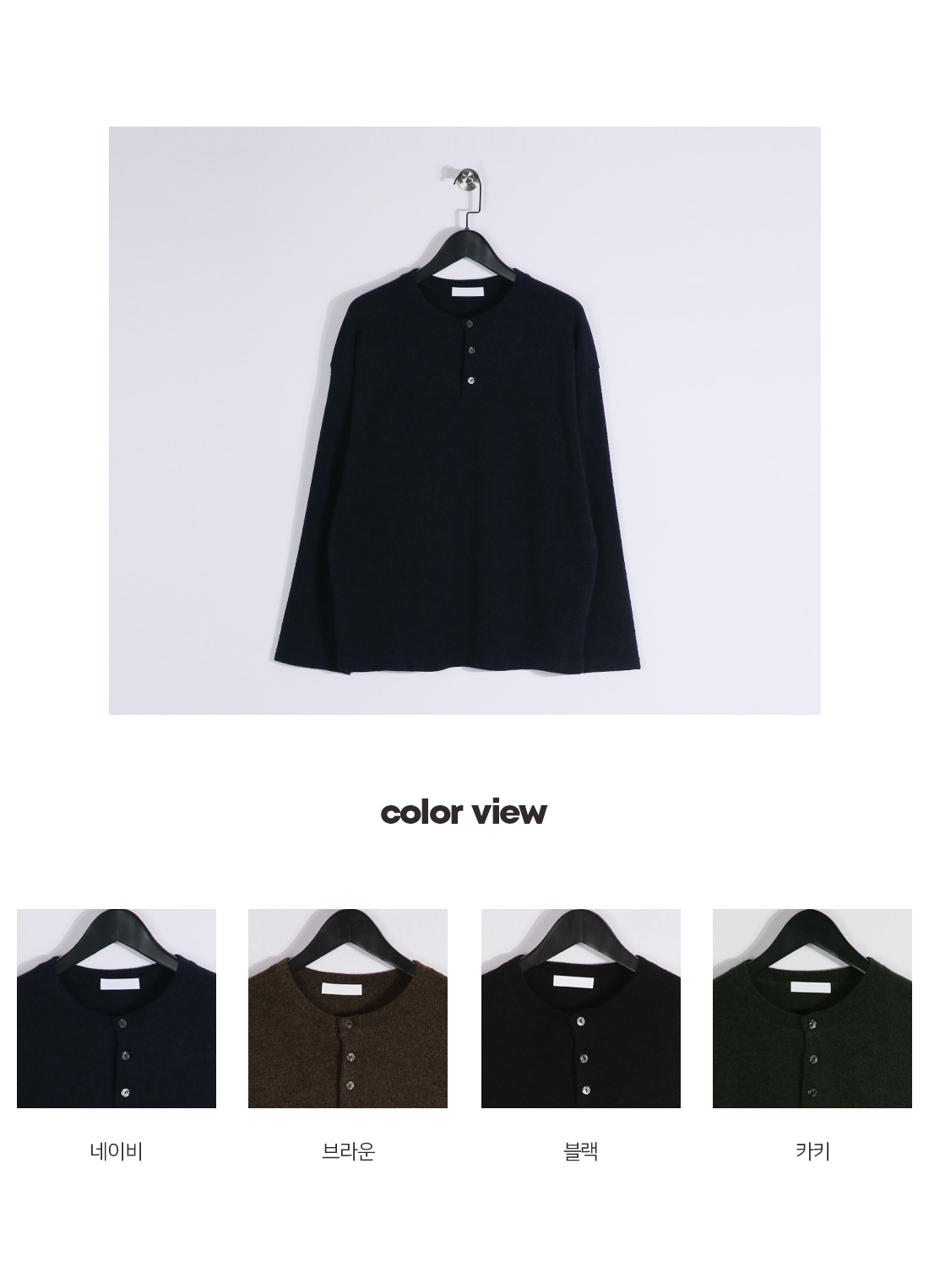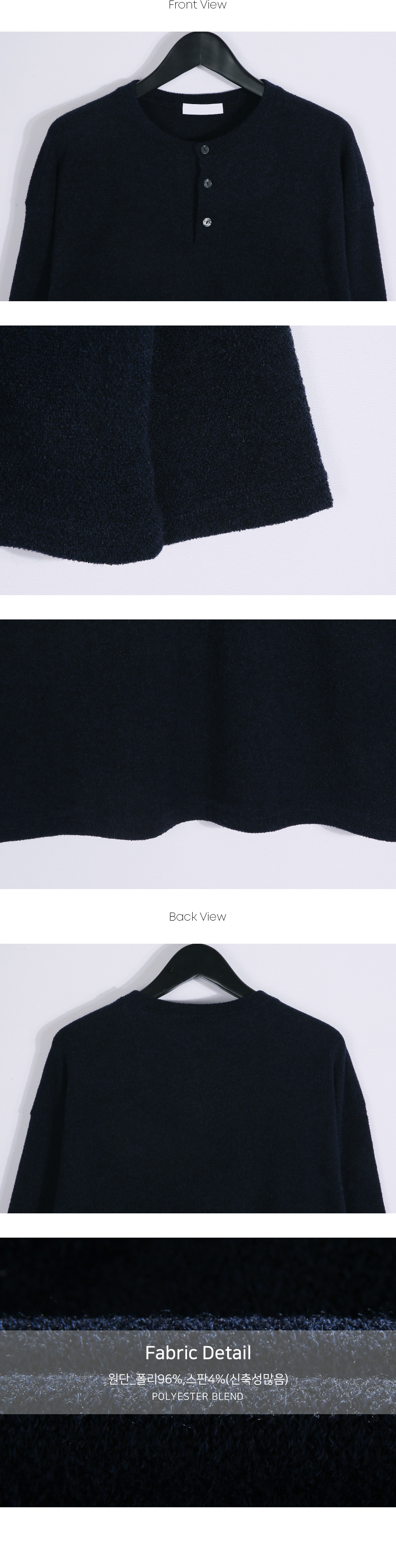 하나만 입어도 포인트가 되는 헨리넥 니트 긴팔 티셔츠입니다. 헨리넥 디자인으로 제작되어 캐주얼하면서도 멋스러운 분위기를 연출해 줍니다. 니트 특유의 신축성이 있어 착용 시 편안하고 자연스러운 핏을 느끼실 수 있습니다. 3버튼 디테일로 단독 착용은 물론, 이너 티셔츠와 레이어드하여 다양한 스타일로 연출하기 좋습니다. 슬랙스, 면팬츠, 데님팬츠 등 다양한 하의와 매치하기 좋아 데일리룩으로 활용도 높은 헨리넥 긴팔 티셔츠 입니다. SIZE FREE 모델착용 [KIHOON]색상 : 네이비 / 사이즈 : FREE ![]() ![]() ![]() ![]() ![]() ![]() ![]() ![]()