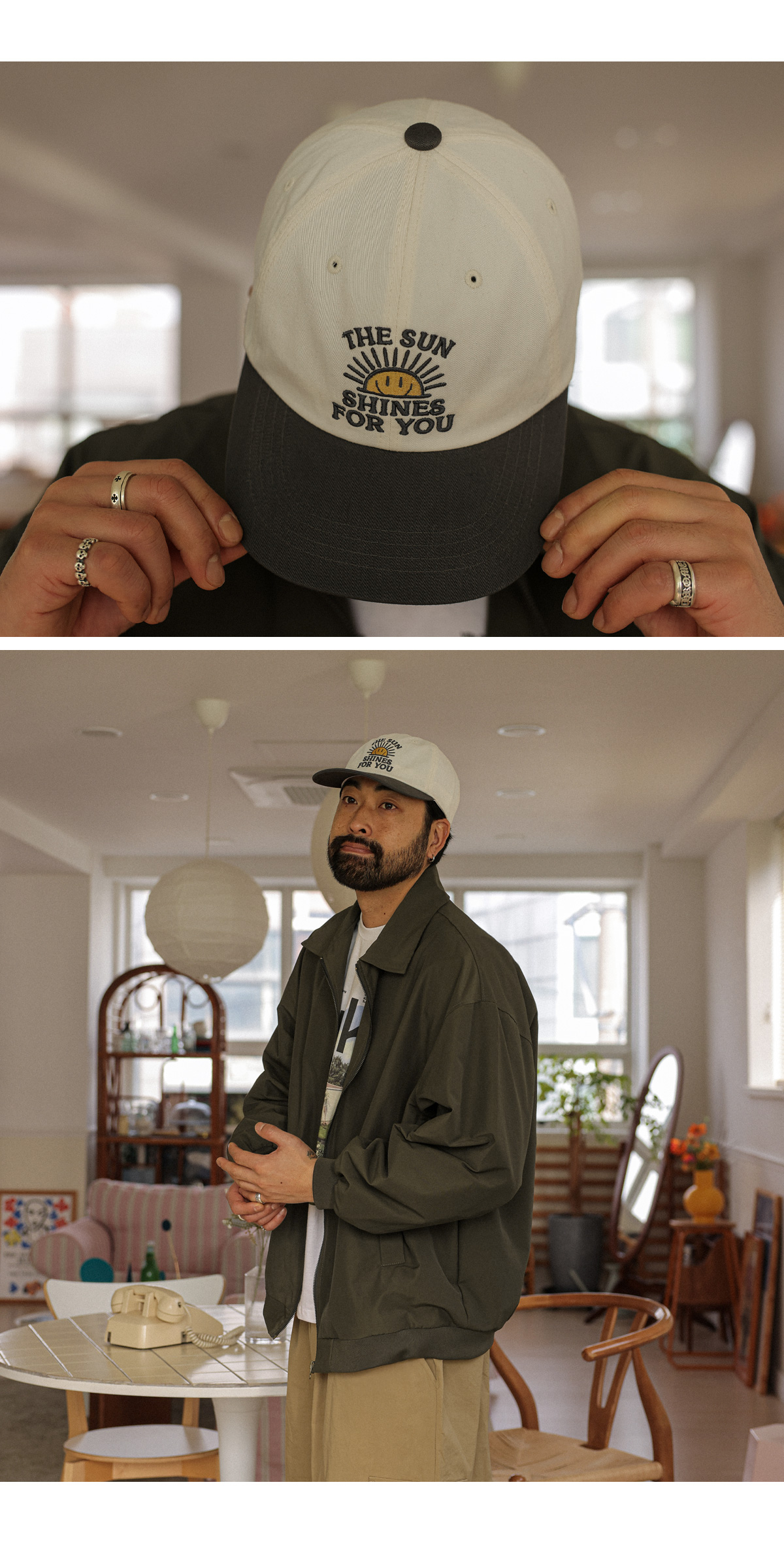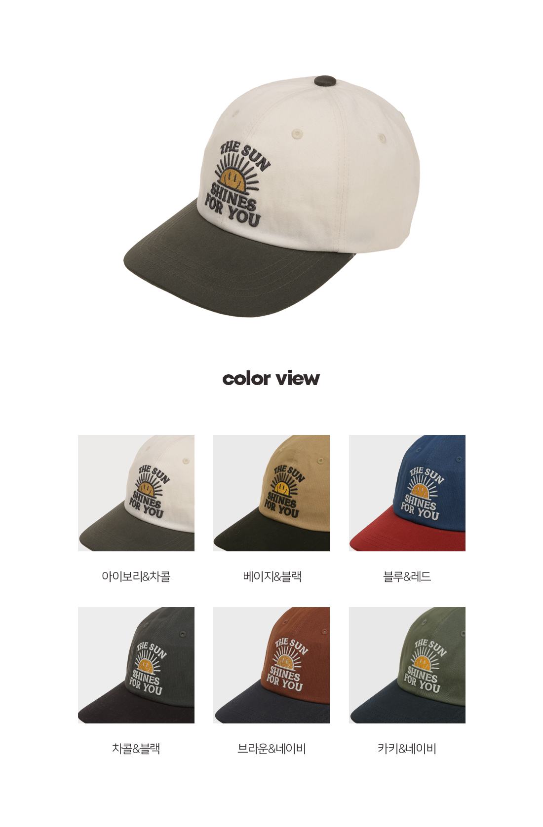 캐주얼한 무드가 돋보이는 볼캡입니다. 배색 디테일과 감각적인 자수 포인트로 스타일을 더했습니다. 심플하면서도 포인트가 되는 디자인으로 아메카지룩, 캐주얼룩, 홈웨어룩 등 다양한 코디에 가볍게 매치하기 좋으며 커플룩 아이템으로도 착용하기 좋은 볼캡입니다. SIZE FREE 모델착용 [KIHOON]색상 : 아이보리&차콜 / 사이즈 : FREE ![]() ![]() ![]() ![]() ![]() ![]() ![]() ![]()