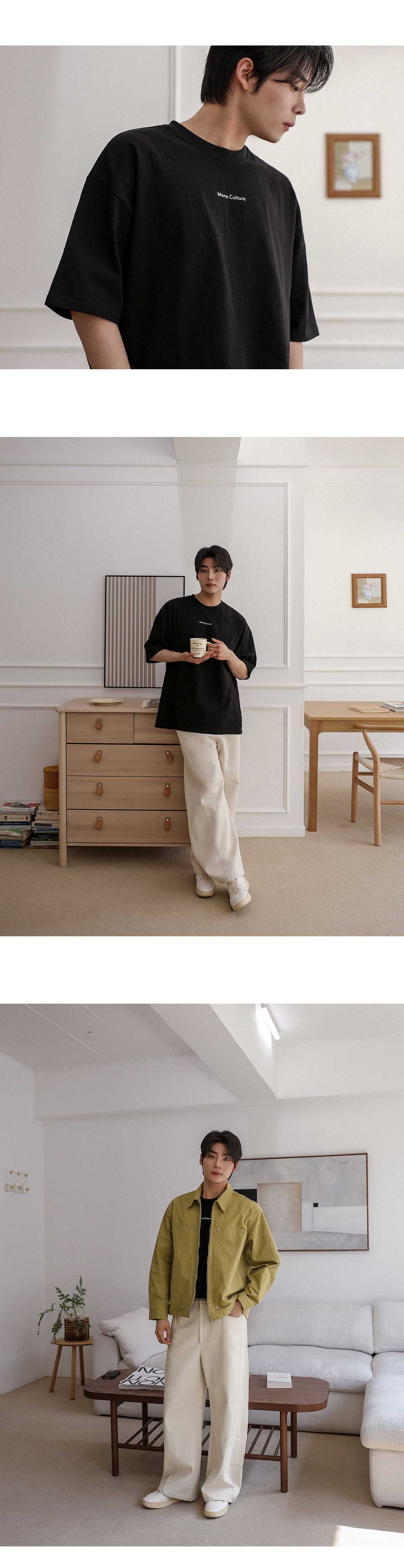 깔끔한 감성의 반팔 티입니다. 섬유 조직이 튼튼한 코튼 100% 소재로 세탁 후에도 변형이 적어 오랫동안 착용하시기 좋고, 부드러운 감촉으로 피부가 민감하신 분들도 편안하게 입으실 수 있습니다. 프론트 로고가 포인트로 들어가 자칫 밋밋할 수 있는 코디에 과하지 않은 임팩트를 더해 주어 단독 혹은 이너로 다양하게 활용하기 좋은 제품입니다. COLOR 블랙,아이보리 SIZE FREE 모델착용 [HOYOUNG]색상 : 블랙 / 사이즈 : FREE 모델스펙 183cm / 73kg [상의:100(L), 하의:30(L), 270mm] ![]() ![]() ![]() ![]() ![]() ![]() ![]() ![]()