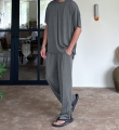 |    MD COMMENT 오까네에서 선보이는 플리츠 반팔 티셔츠입니다. 초가을까지도 입기 좋은 얇은 두께감은 물론 매력적인 플리츠 원단과 부드러운 터치감으로 데일리로 입기 좋으며 사이드 트임의 버튼으로 핏 조절 및 활동성이 편안하고 셋업인 팬츠와 혹은 단독으로 이너웨어를 착용해 캐주얼룩, 스트릿웨어룩 등 코디 연출하기 좋으며 핏 또한 오버핏이지만 스판성이 좋아 편안한 피팅감을 느끼실 수 있습니다. SIZE L-XL,2XL-3XL 모델착용 [KIHOON]색상 : 차콜 / 사이즈 : L-XL [JUNBEOM]색상 : 라이트그레이 / 사이즈 : L-XL