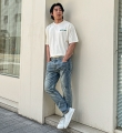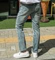 |  MD COMMENT 포인트 주기 좋은 데님 팬츠입니다. 겨울을 제외한 나머지 계절에 착용하기 좋은 두께감은 물론 은은한 워싱과 포켓밑 스티치, 찢어진 듯한 디자인으로 디테일이 많아 하나쯤 소장하여 두고두고 활용하기 좋아 고객님들께 추천드리는 아이템이며 반팔 티, 니트, 남방 등 다양한 상의와 매치하여 캐주얼룩, 남친룩, 데일리룩 등 여러 연출이 가능하고 핏 또한 슬림핏이지만 신축성이 있어 좀 더 여유 있는 착용감을 느끼실 수 있습니다. SIZE 30,32,34,36,38,40,42,44,46 모델착용 [JUNBEOM]색상 : 그린옐로우청 / 사이즈 : 36