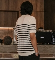 오까네에서 선보이는 스트라이프 반팔 니트입니다.