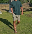 |      MD COMMENT 오까네에서 제작한 반발 티셔츠입니다. 여름내내 활용하기 좋은 두께감은 물론 넥 부분 늘어남 방지를 위해 안감 또한 일반 티셔츠보다 더 튼튼하게 제작되었으며 앞뒷면 나염 포인트로 팬츠에 따라 캐주얼룩, 휴양지룩, 데이트룩 등 활용하기 좋은 아이템이며 핏 또한 루즈한 핏으로 좀 더 여유 있는 피팅감을 느끼실 수 있습니다. SIZE L-XL,2XL,3XL,4XL-5XL 모델착용 [JUNBEOM]색상 : 그린 / 사이즈 : L-XL [KIHOON]색상 : 화이트 / 사이즈 : L-XL