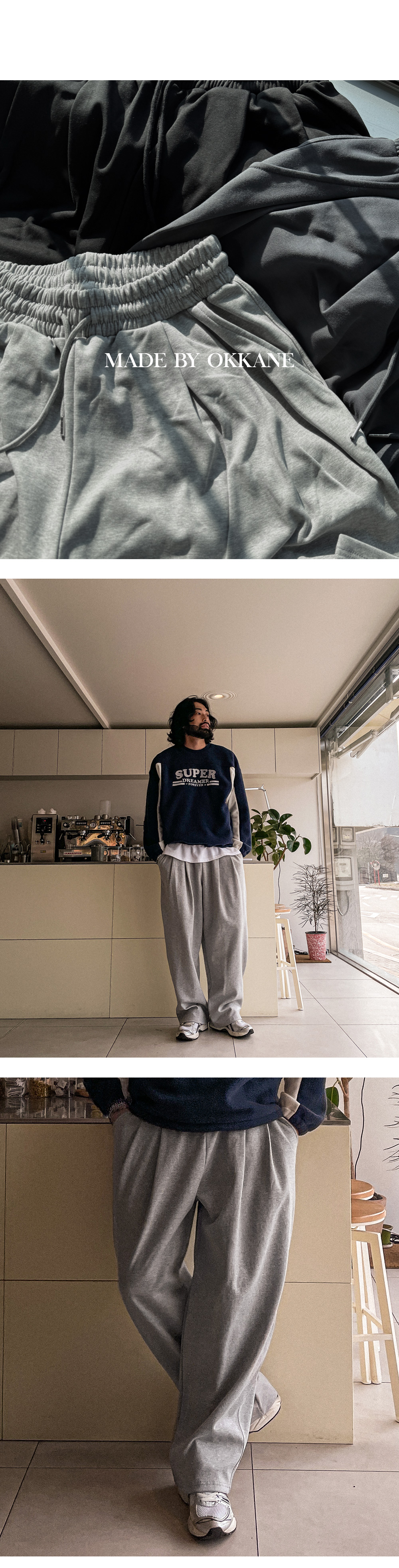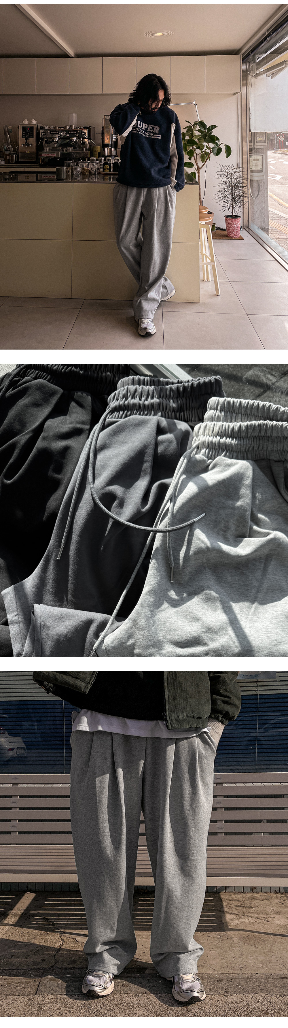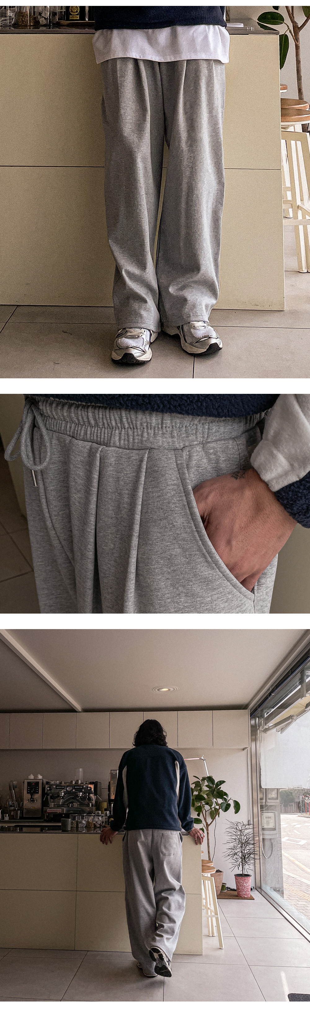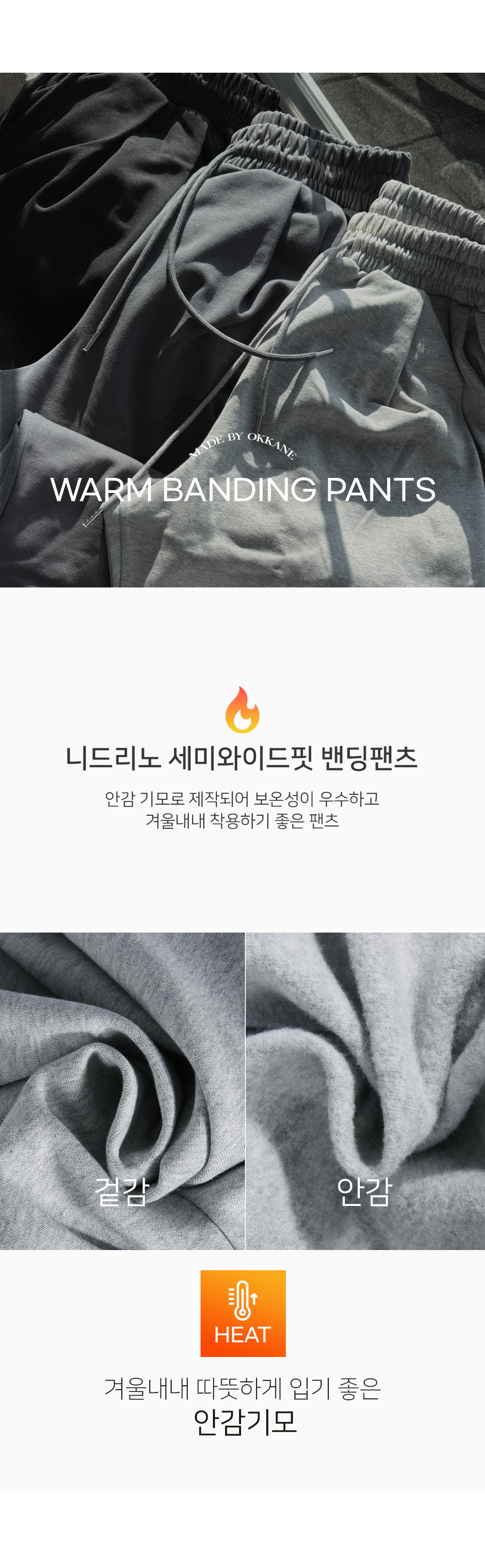 |   MD COMMENT 오까네에서 선보이는 세미와이드핏 팬츠입니다. 늦가을부터 겨울 내내 착용하기 좋은 두께감은 물론 안감기모로 제작되어 보온성이 좋고 허리 투턱 포인트가 있어 디자인, 착용감까지 챙긴 아이템으로 데일리룩, 꾸안꾸룩, 캐주얼룩 등 여러 연출이 가능하고 핏 또한 세미와이드 핏으로 좀 더 여유 있는 착용감을 느끼실 수 있습니다. SIZE XL-2XL,3XL-4XL,5XL-6XL 모델착용 [KIHOON]색상 : 그레이 / 사이즈 : XL-2XL